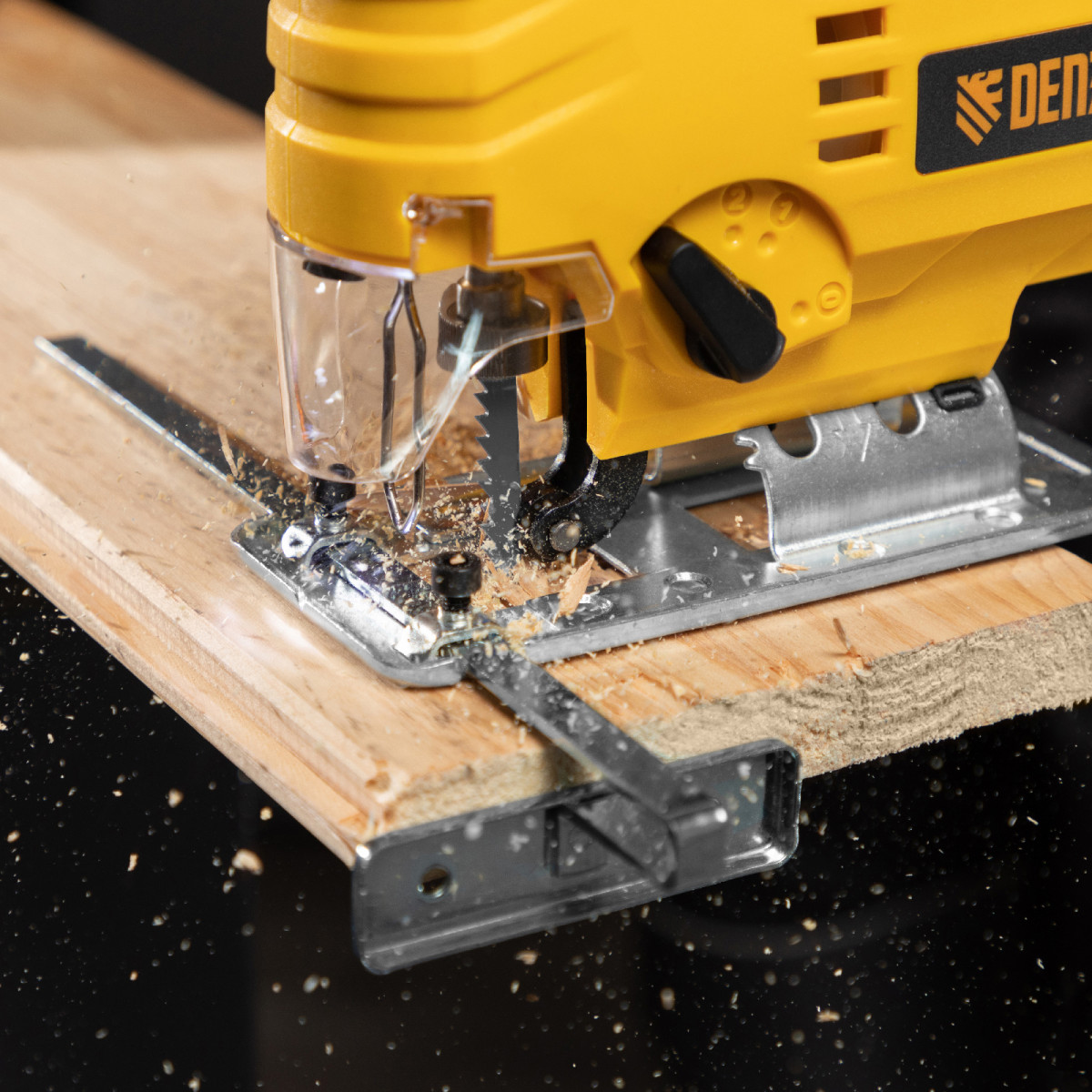 - Одинаковая эффективность при прямой и фигурной резке — усовершенствованный механизм главного движения исключает отклонение пильного полотна в сторону.