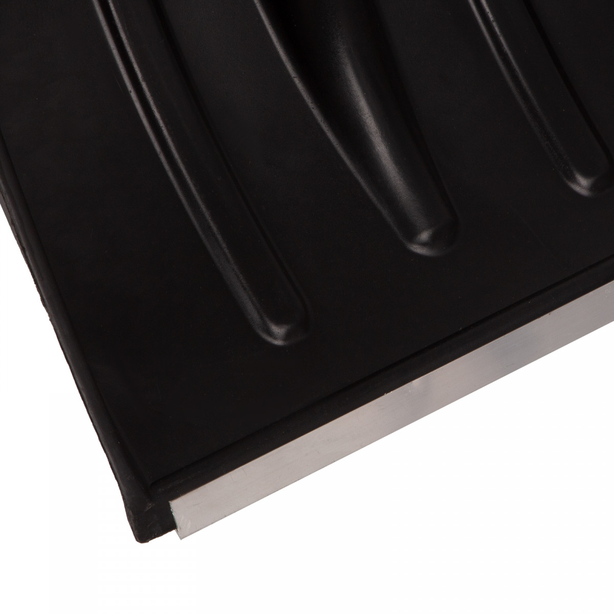 - Кромка ковша оснащена защитной накладкой из алюминиевого сплава, благодаря чему он защищен от повреждений и износа, а также справляется с очисткой слежавшегося снега и наста.