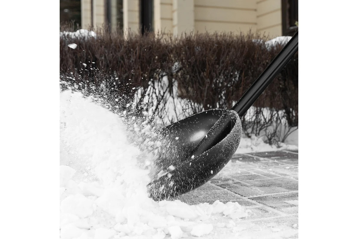 Пластиковая лопата с алюминиевым черенком, позволяет облегчить уборку снега. С ее помощью можно очистить дорожки в загородном доме, выезд из гаража и т.д. С облегченной лопатой весом 1,1 кг легко справится женщина или подросток. Длина инструмента составляет 1390 мм, что позволяет снизить нагрузку на спину. Преимущества: - Морозостойкость — ковш выполнен из ударопрочного полипропилена, который выдерживает низкие температуры. - Эффективная работа — углубленный ковш с высокими бортиками вмещает большое количество снега. - Очищение от слежавшегося снега и наста — накладка из алюминиевого сплава защищает кромку ковша от повреждений и истирания. - Надежность — черенок закреплен заклепками, дополнительные ребра жесткости повышают устойчивость ковша к нагрузкам. - Комфортная работа — эргономичная дополнительная рукоятка обеспечивает надежный хват и оптимальное распределение нагрузки.
