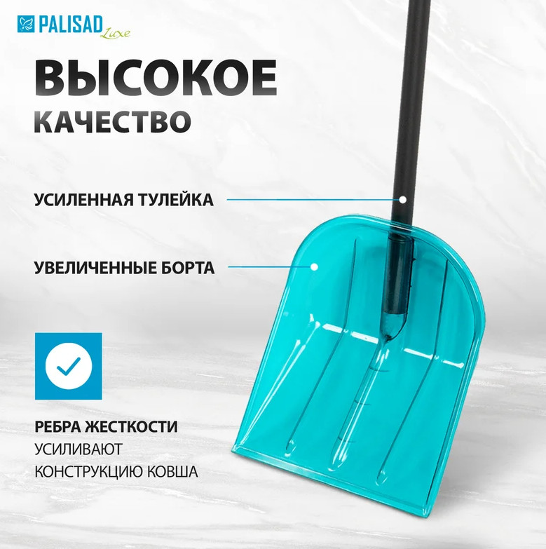 Лопата для уборки снега поликарбонат, 340х385х1340 мм, алюминиевый черенок, LUXE Palisad