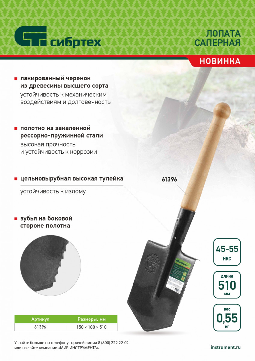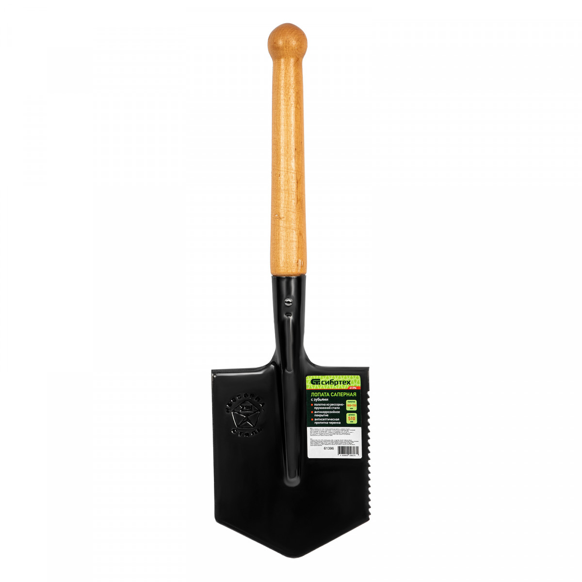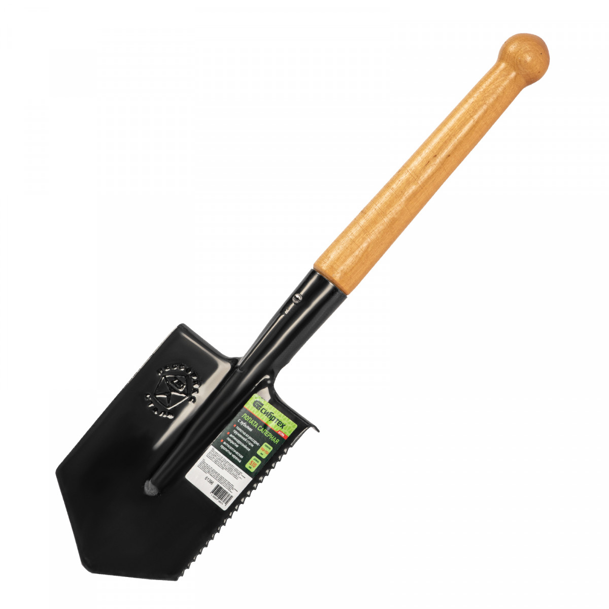 Лопата саперная, 150х180х510 мм, деревянный черенок, с зубьями, Сибртех