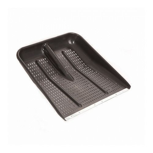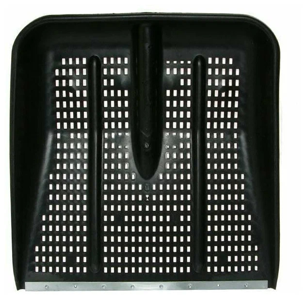Лопата для снега пластмассовая 47х47см, без черенка, оцинкованная планка, на заклепках, с ребрами жесткости, перфорированная. Цвет черный. Лопата изготовлена из уникального сырья, которое держит форму и сохраняет свои функции при самых суровых условиях. Лопата выдерживает большие нагрузки, а перфорация снизит подъемный вес при работе.