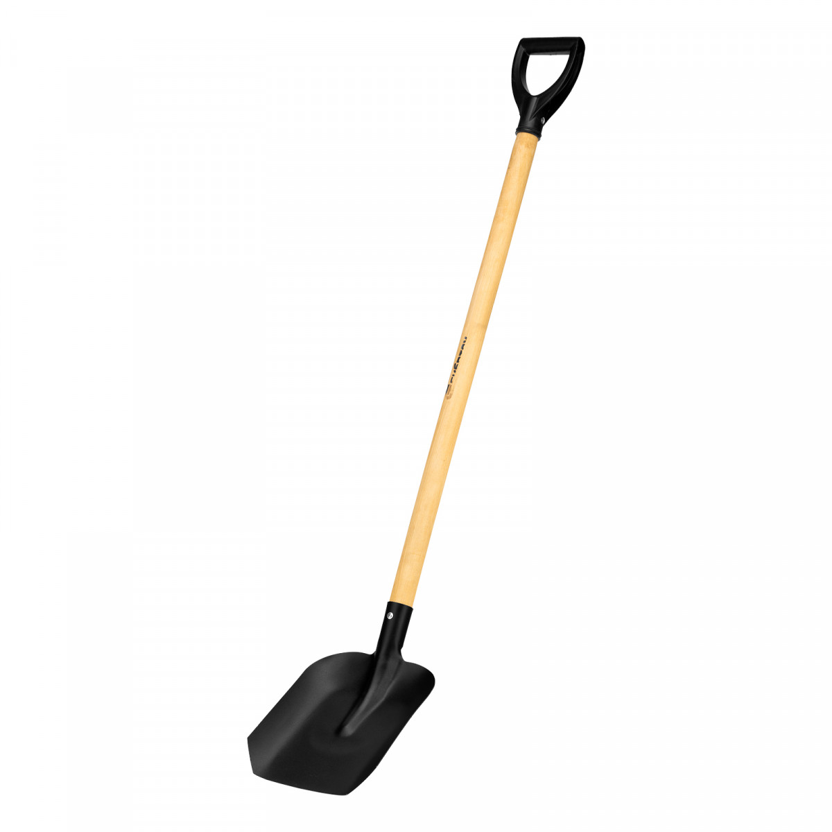 Совковая лопата с деревянным черенком с пропиткой, используется для перемещения грунта и сыпучих материалов — угля, щебня, гравия, песка.