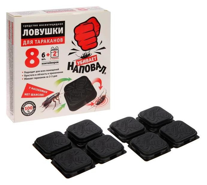 Массовая гибель тараканов наступает на 2 сутки после установки приманок. 2 контейнера на помещение площадью до 10 кв.м.