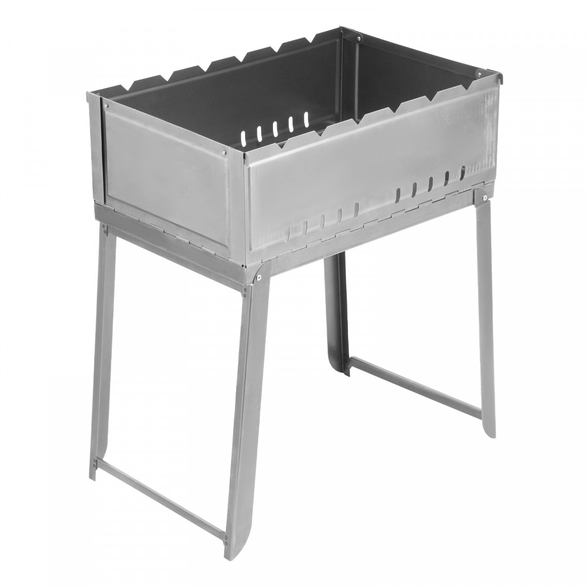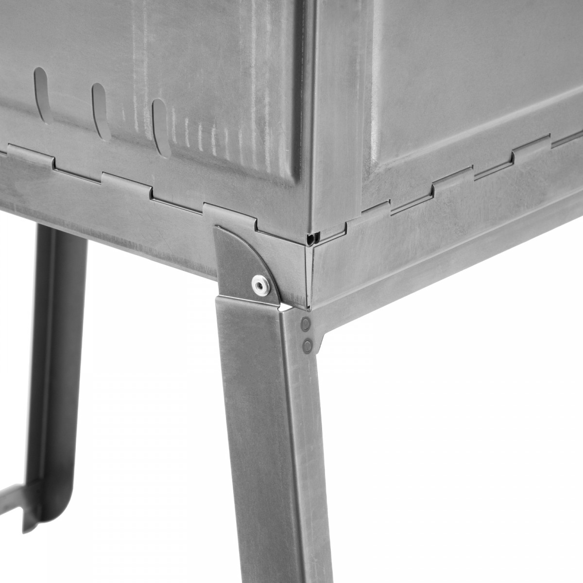 - Долгий срок службы — мангал изготовлен из жаропрочной углеродистой стали увеличенной толщины 1 мм, ребра жесткости повышают прочность конструкции.