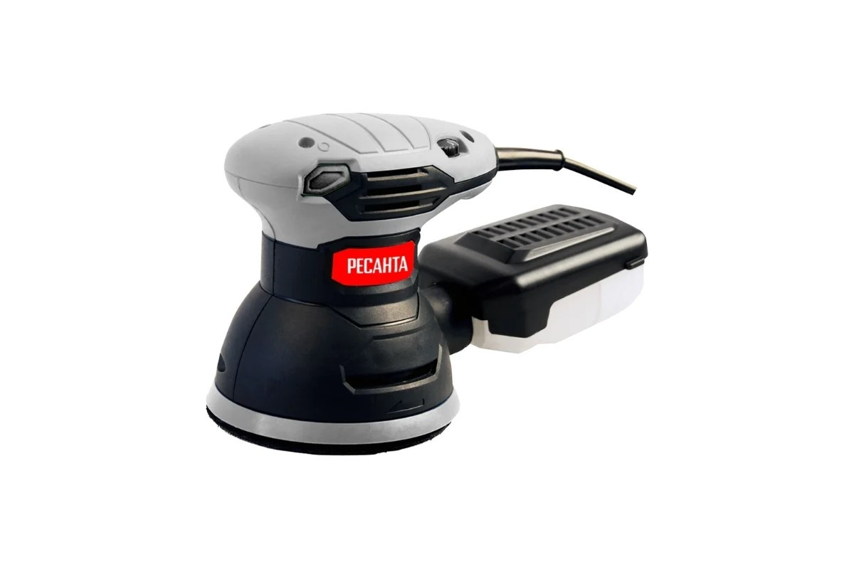 Эксцентриковая шлифовальная машина – удобный в использовании электроинструмент, который применяется для шлифования различных поверхностей при помощи специального абразивного круга. В зависимости от поставленных целей могут использоваться круги разной зернистости. Благодаря этому, шлифмашина данной модели может использоваться для грубой и деликатной шлифовки, полировки. Хорошо подходит для обработки больших поверхностей, часто используется автомобильными малярами и столярами.Шлифмашина Ресанта ЭШМ-125К состоит из пластикового корпуса, внутри которого находится электромотор с номинальной мощностью 300 Вт. Он обеспечивает вращение круглой подошвы через передаточный механизм. Особенность инструмента заключается в том, что подошва вращается по орбите и вокруг своей оси, благодаря чему достигается отменный результат шлифовки. Скорость вращения легко регулируется интенсивностью нажатия кнопки включения. Частота вращений составляет от 4 000 до 14 000 об/мин. Эксцентриковая шлифовальная машина отлич
