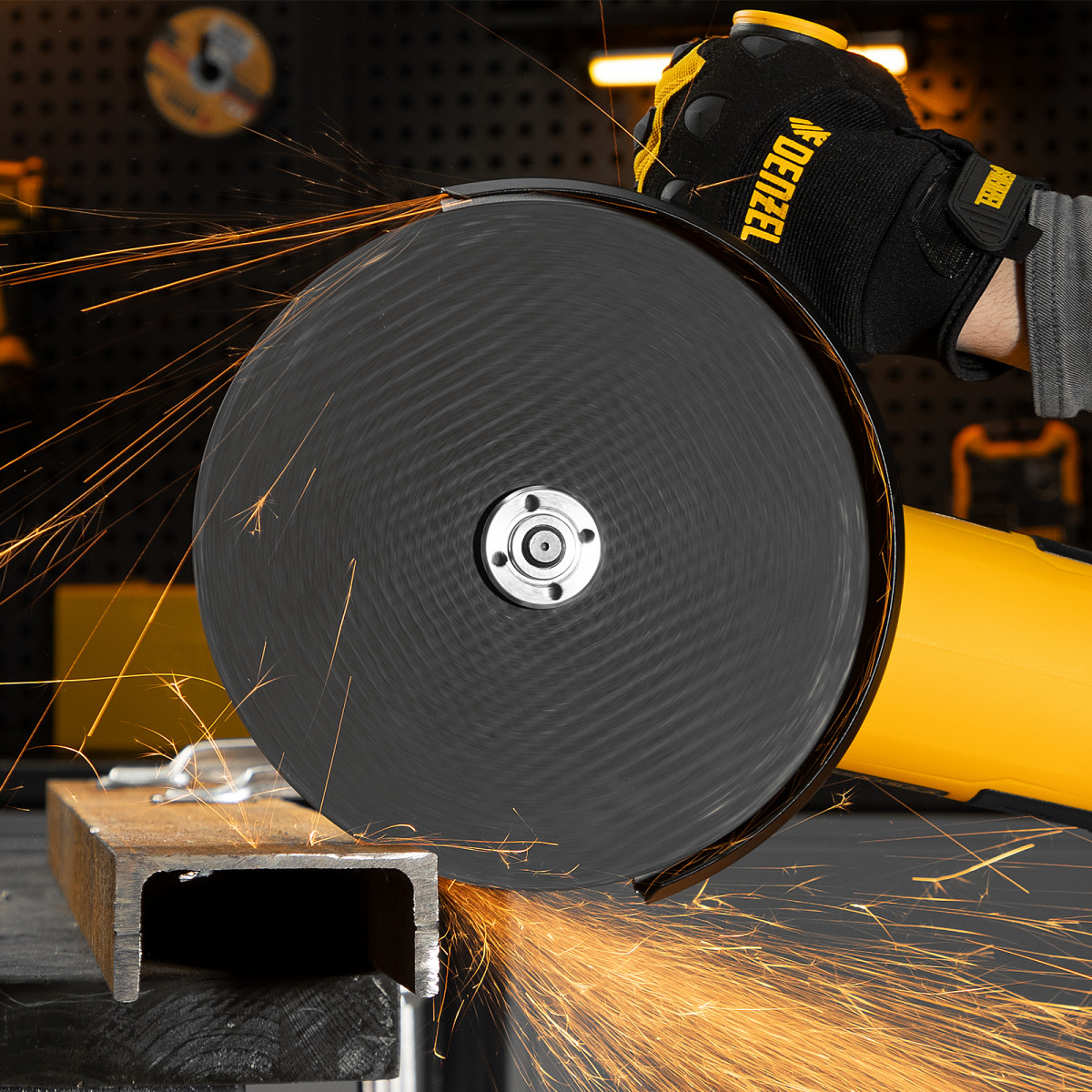 Угловая шлифовальная машина Denzel AG230-2400 26915 мощностью 2400 Вт совместима с насадками максимальным диаметром 230 мм, поддерживает частоту вращения шпинделя 6000 об/мин, благодаря чему эффективно справляется с обработкой и зачисткой поверхностей, а также резкой, шлифовкой металла толщиной до 80 мм и камня. Пригодится дома, в гараже и на даче.