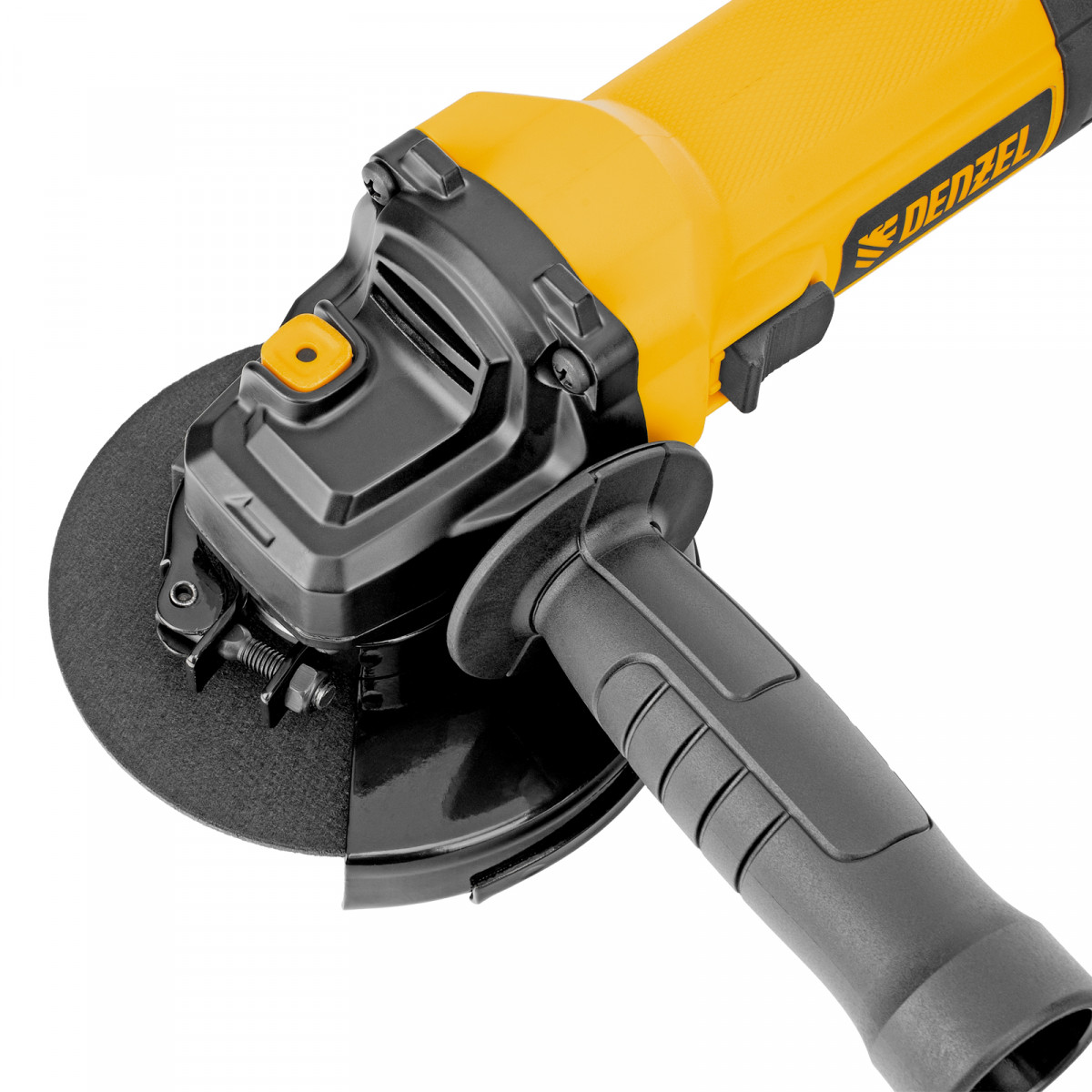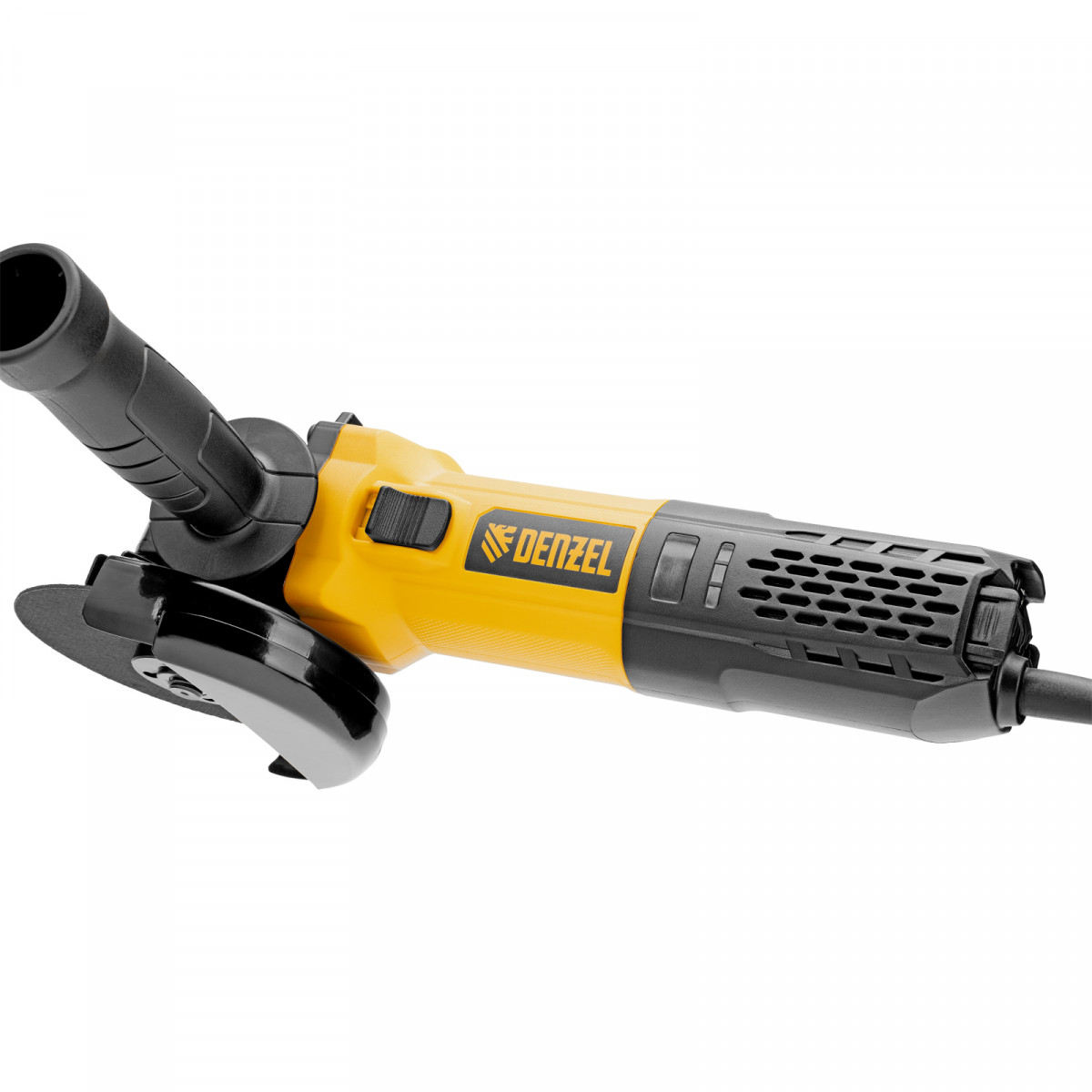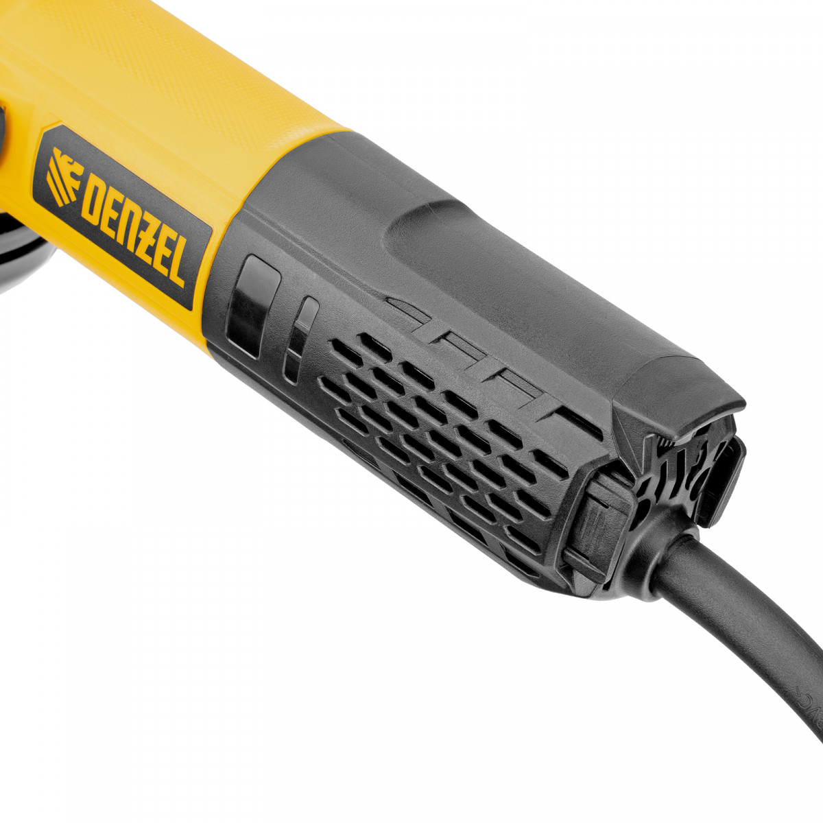 Угловая шлифовальная машина Denzel AGB-125-1700 26914 мощностью 1700 Вт используется для выполнения отрезных, зачистных и шлифовальных работ с металлическими заготовками при помощи абразивных кругов и проволочных щеток. Совместима с оснасткой диаметром 125 мм, имеет функцию поддержания оборотов под нагрузкой, частота вращения шпинделя составляет 3000-11000 об/мин. Система пылезащиты двигателя позволяет работать по бетону и камню.