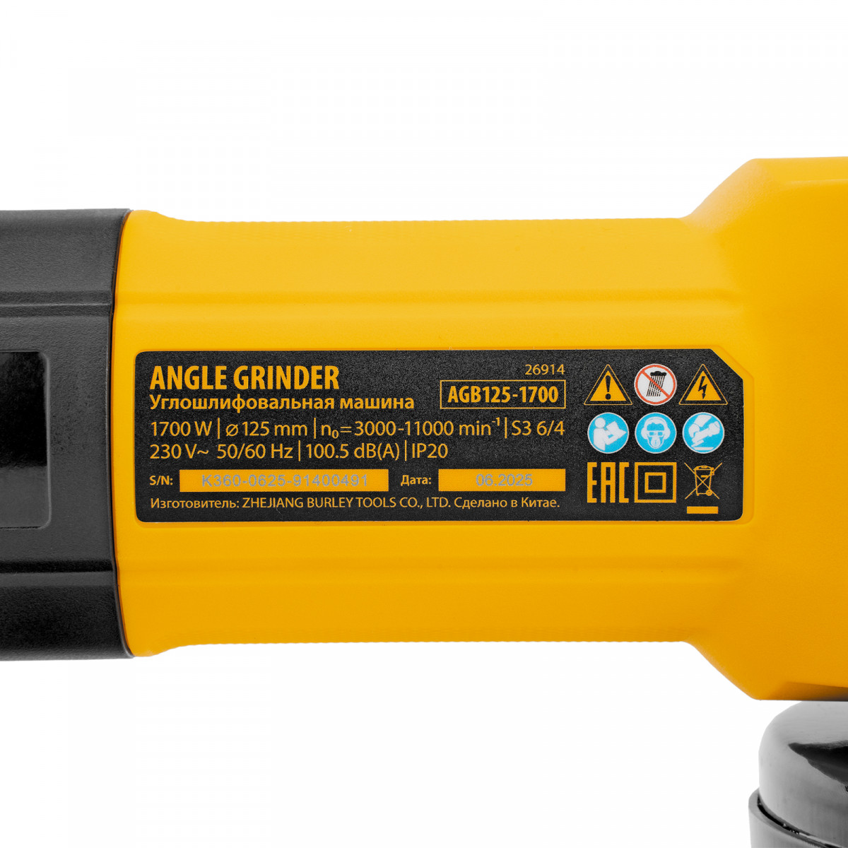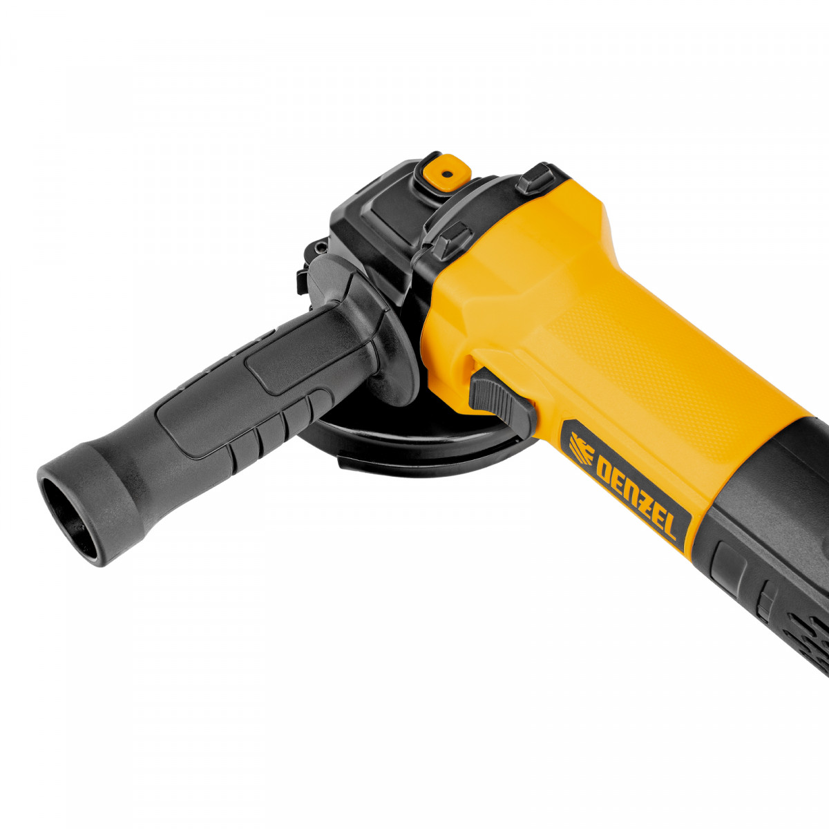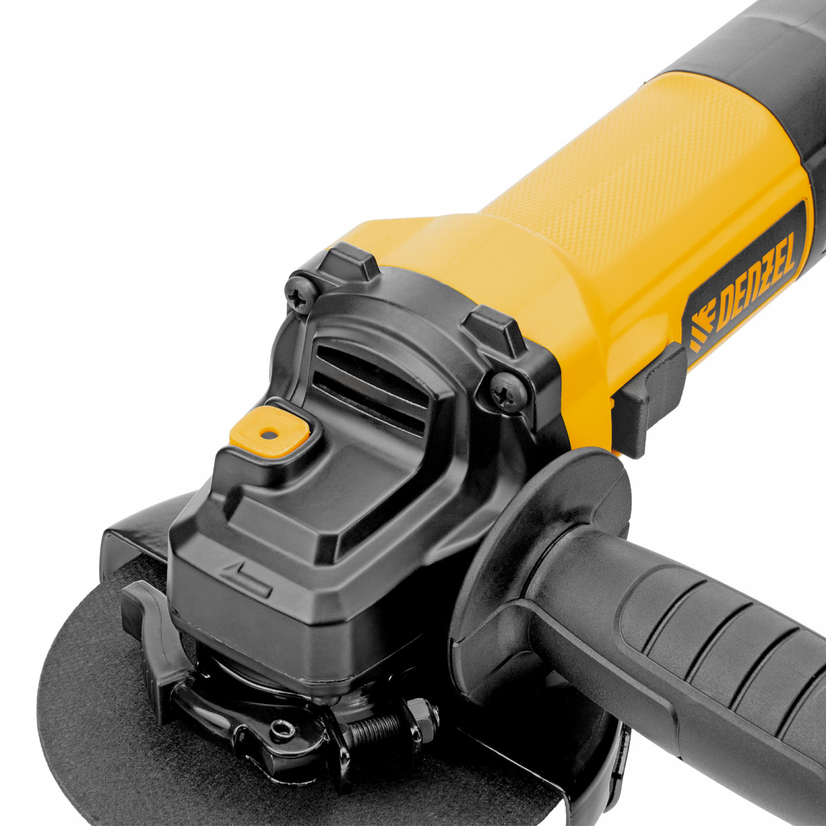 Угловая шлифовальная машина Denzel AGB-125-1700 26914 мощностью 1700 Вт используется для выполнения отрезных, зачистных и шлифовальных работ с металлическими заготовками при помощи абразивных кругов и проволочных щеток. Совместима с оснасткой диаметром 125 мм, имеет функцию поддержания оборотов под нагрузкой, частота вращения шпинделя составляет 3000-11000 об/мин. Система пылезащиты двигателя позволяет работать по бетону и камню.