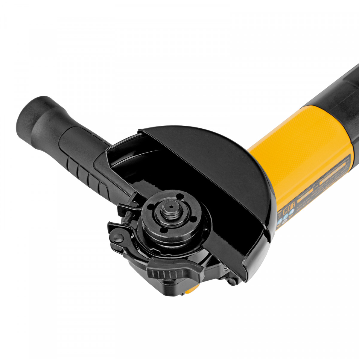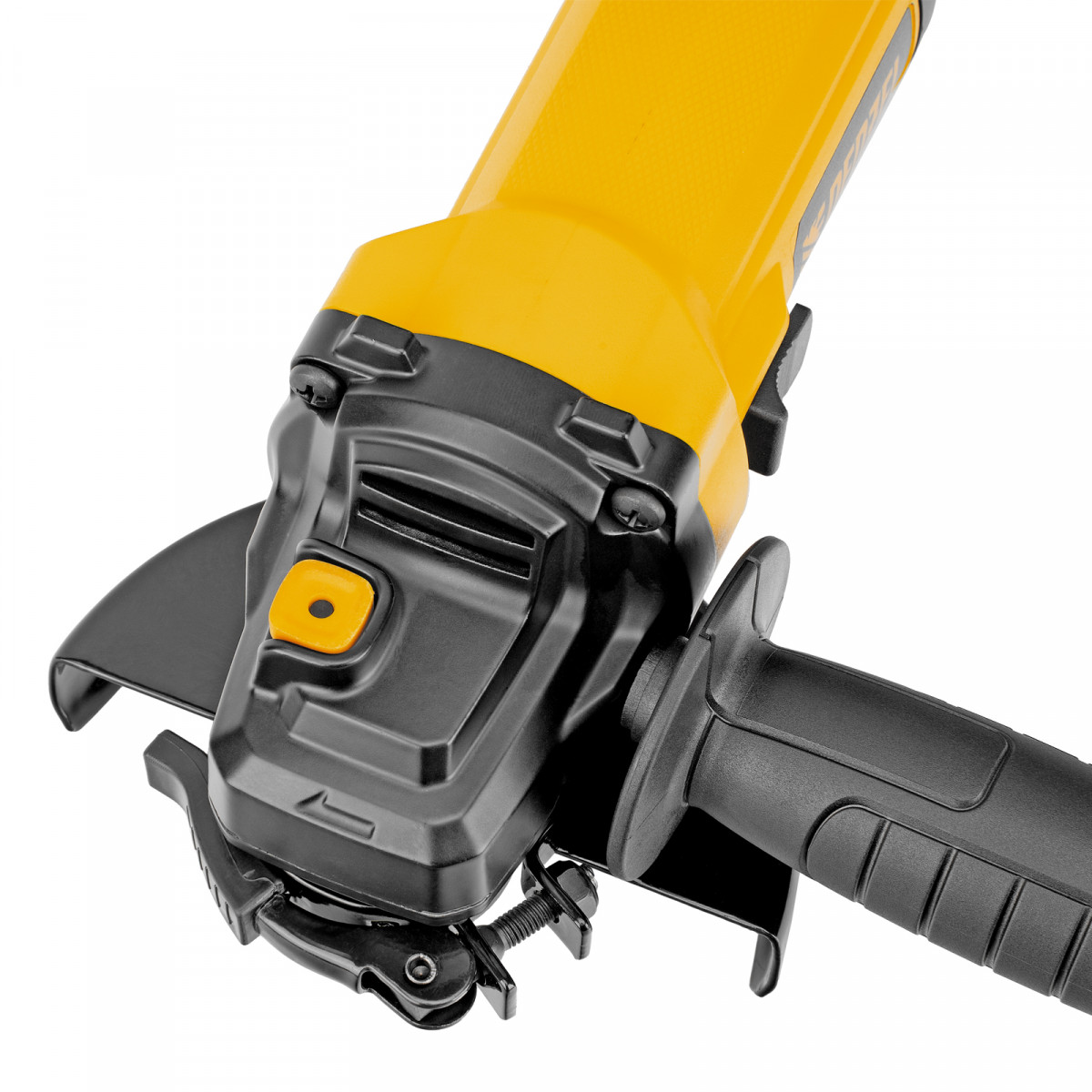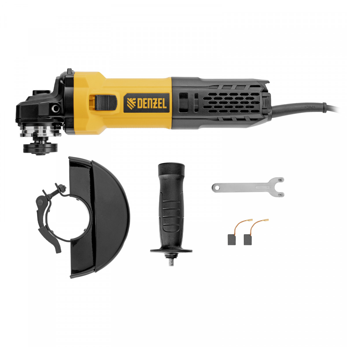 • Все необходимое в комплекте — УШМ поставляется с боковой рукояткой, защитным кожухом, ключом для фиксации оснастки и запасными угольными щетками.