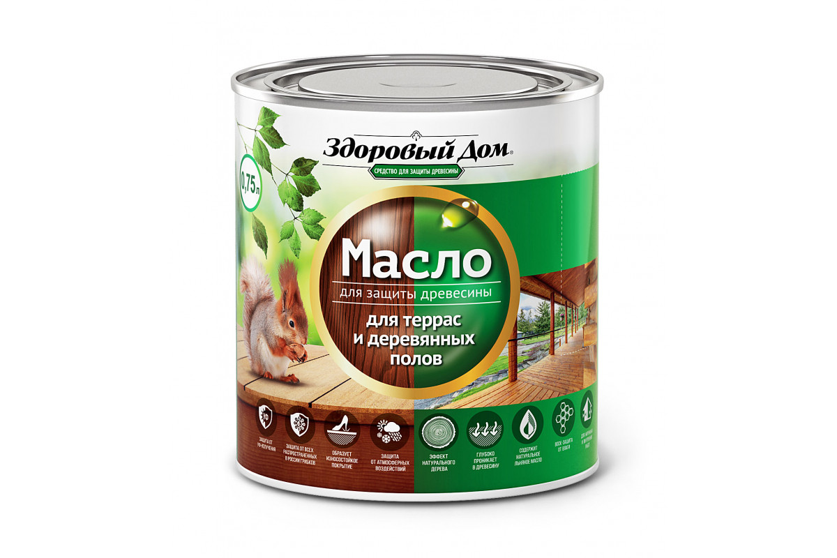 Масло для террас и деревянных полов Здоровый Дом Махагон 0,75л