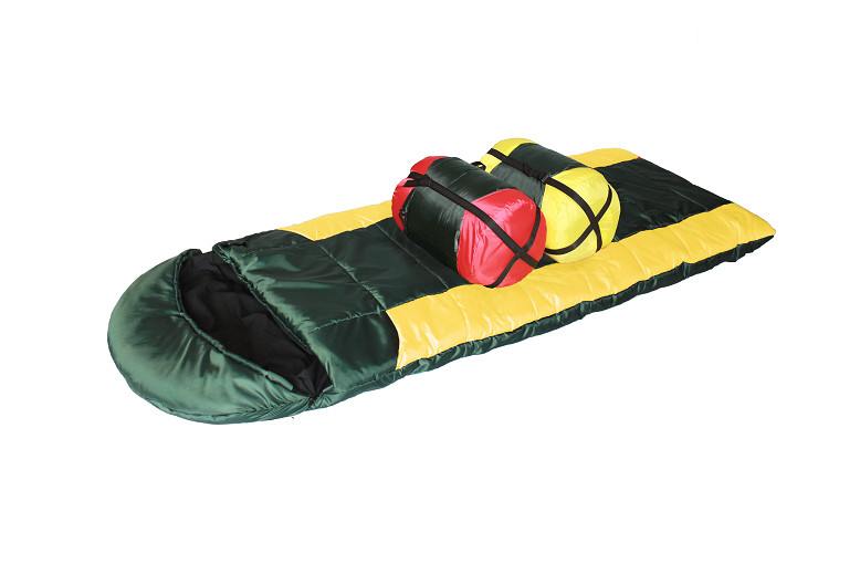 Спальный мешок с капюшоном , на молнии, расстегивается одеялом. Ширина в застегнутом состоянии 90см. Из за особой технологии изготовления в изделии образуются воздушные полости, обеспечивающие дополнительную изоляцию от холода. Упаковывается в компрессионный чехол с четырьмя стяжками из стропы. Выполняется из ткани таффета рипстоп с водоотталкивающей пропиткой. Внутренняя ткань бязь, утеплитель: холлофан 400 гр/м.кв. Комфортная температура: холлофан 400 от -20 до +4 градусов Цельсия.
