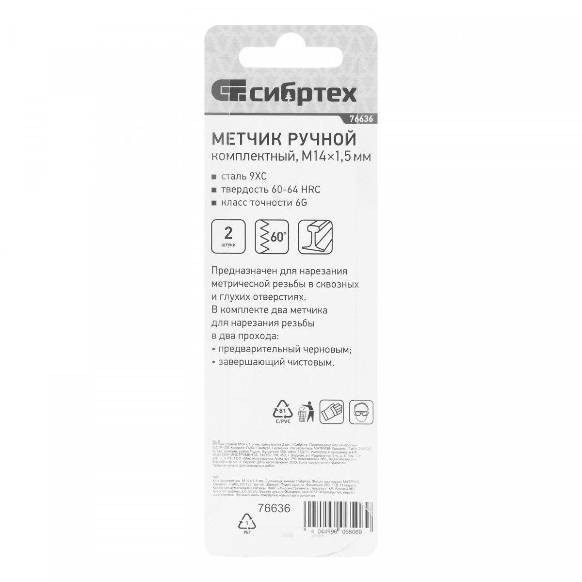 Ручной метчик Сибртех 76636 входит в комплект из 2 шт. и предназначен для нарезания внутренней резьбы диаметром М14 и с шагом 1,5 мм. Используется для работы со сквозными и глухими отверстиями. Устанавливается на метчикодержатель под посадочный квадрат 9 мм. Метчик пригодится для проведения слесарных работ на стройке или в быту.