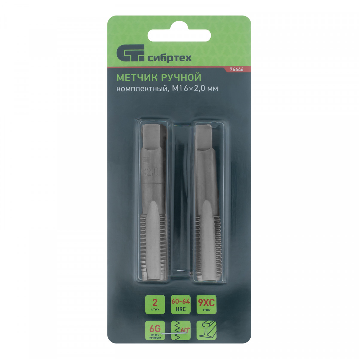 Метчик ручной М16 х 2 мм, комплект из 2 шт Сибртех