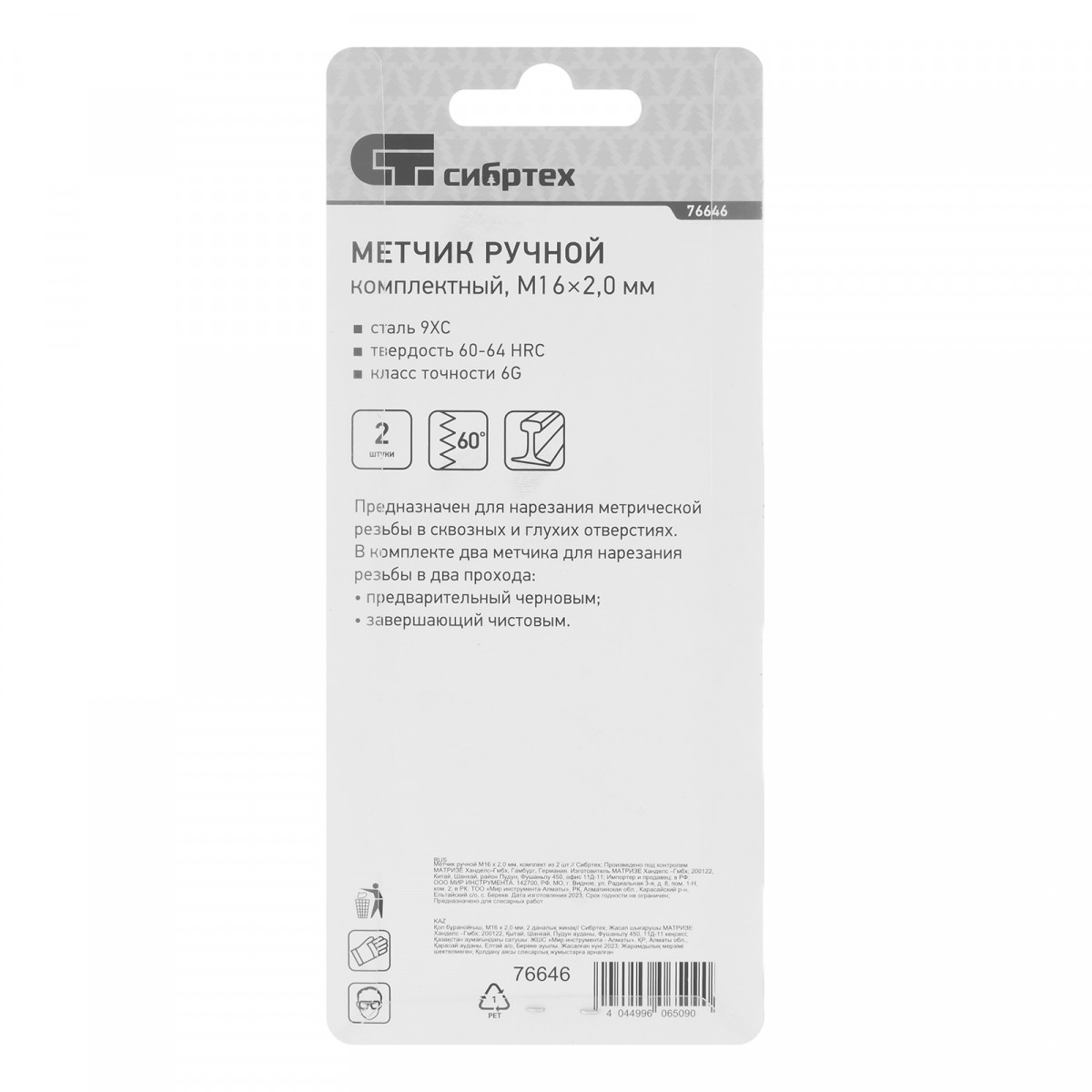 - Высокая точность резьбы — в наборе 2 метчика: черновой для первого прохода и чистовой для финишной доводки.
