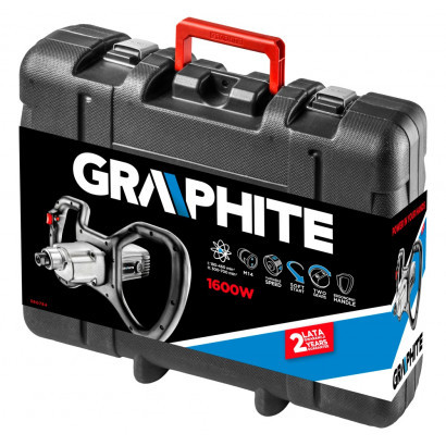 Профессиональный двухскоростной электрический миксер GRAPHITE с мощным двигателем 1600 Вт, предназначен для перемешивания густых и жидких гипсовых растворов, клеевых смесей и краски - до 90 литров за один раз. Миксер благодаря прочной конструкции и эффективной системе отвода теплоты приспособлен к непрерывной эксплуатации при выполнении отделочных работ на крупных стройплощадках. Миксер с возможностью регулировки частоты вращения шпинделя и функцией плавного пуска. На первой скорости двигатель инструмента обеспечивает число оборотов в диапазоне от 100 до 420 в минуту, на второй скорости - от 150 до 600. Специально профилированная, покрытая антискользящим материалом рукоятка инструмента обеспечивает комфортную и безопасную работу в течение длительного времени. В целях безопасности миксер оснащен блокиратором, предупреждающим случайное включение. В набор с миксером входят дополнительные мешалки и удобный чемоданчик. Соответствие европейским стандартам обеспечивает сертификат СЕ.