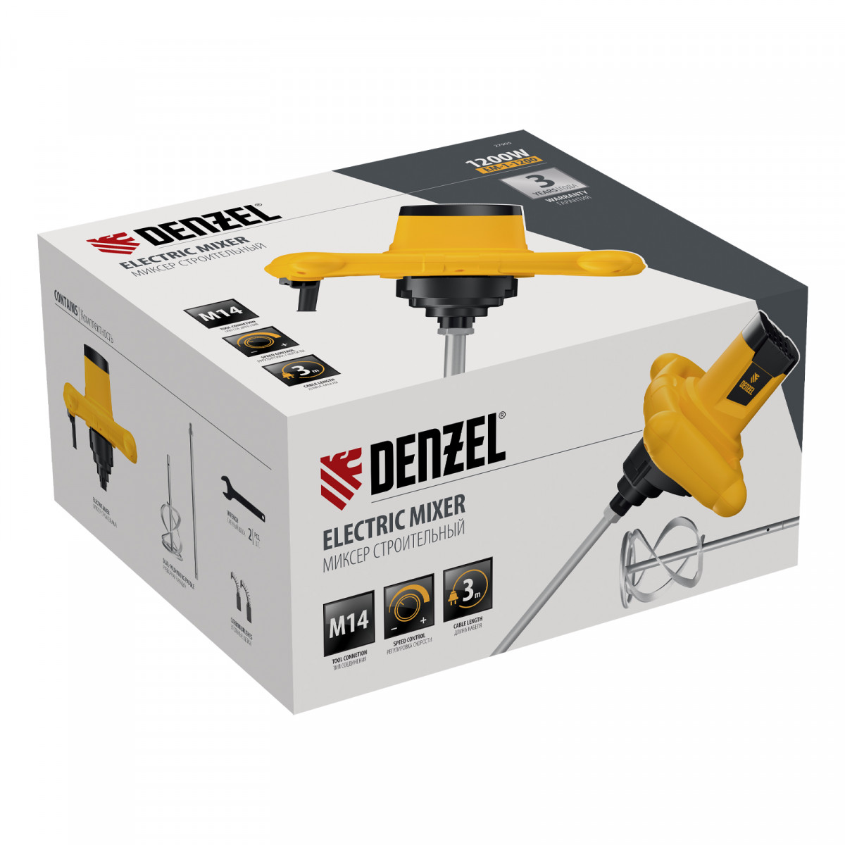 Миксер строительный EM-1-1200, 1200 Вт, 0-680 об/мин Denzel