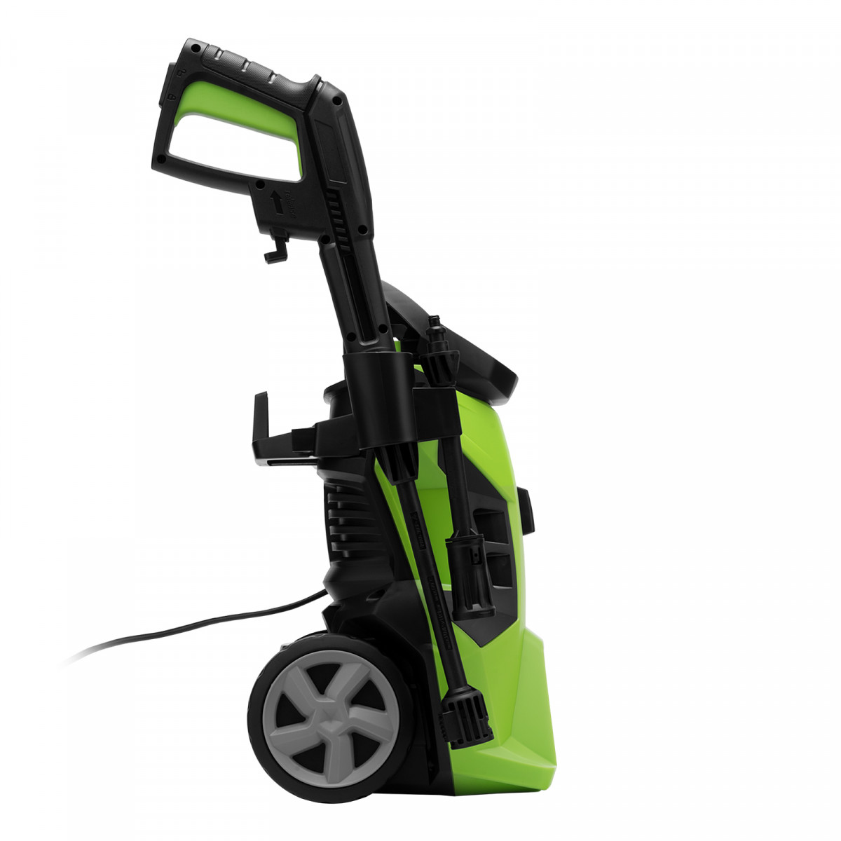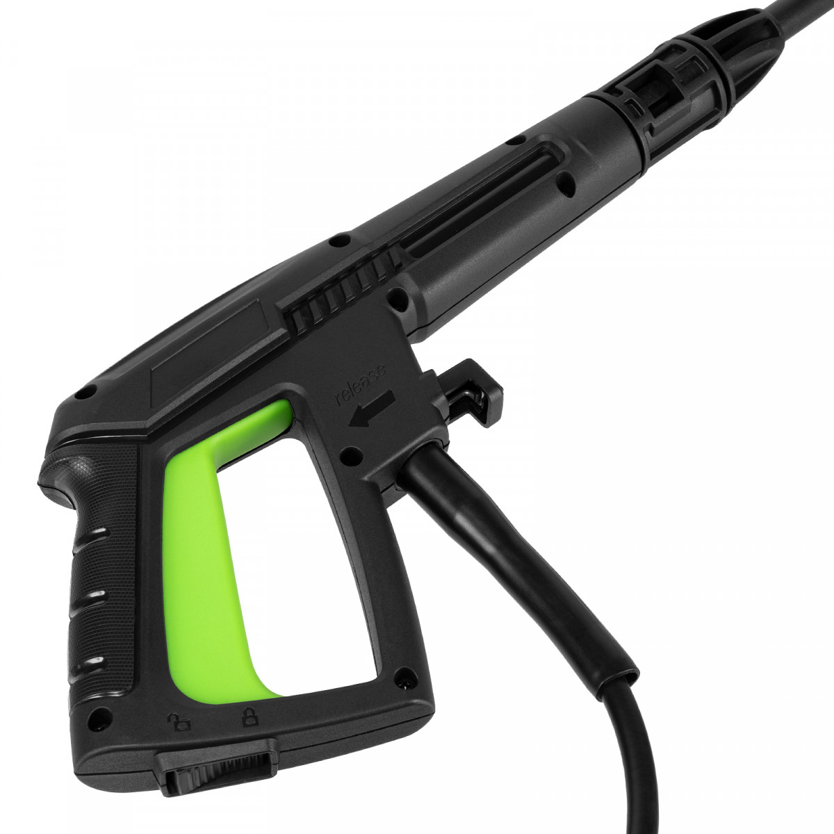 • Защита от непредвиденного пуска — главный выключатель препятствует случайному включению, рычаг пистолета блокируется в выключенном положении.