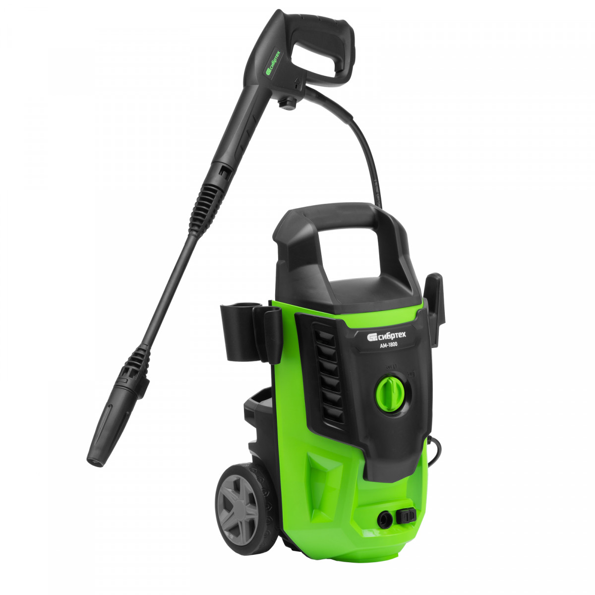 Колесная моечная машина высокого давления Сибртех AM-1800 58226 мощностью 1800 Вт и производительностью 350 л/ч подает струю воды 140 бар. Позволяет быстро очистить садовые дорожки, забор, стены строений, садовый инвентарь, уличную мебель, кузов автомобиля. Машина подключается к водопроводу, а также способна работать в режиме самовсасывания — в этом случае в качестве источника воды можно использовать любую емкость. Устройство будет полезно владельцам дачных участков.