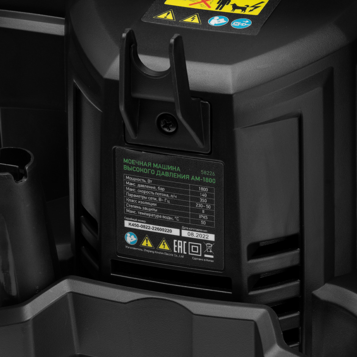 Моечная машина высокого давления АМ-1800, 1800 Вт, 140 бар, 350 л/ч, колесная Сибртех