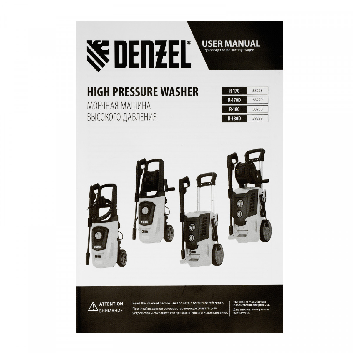 Моечная машина высокого давления R-170, 2000 Вт, 170 бар, 360 л/ч, колесная Denzel