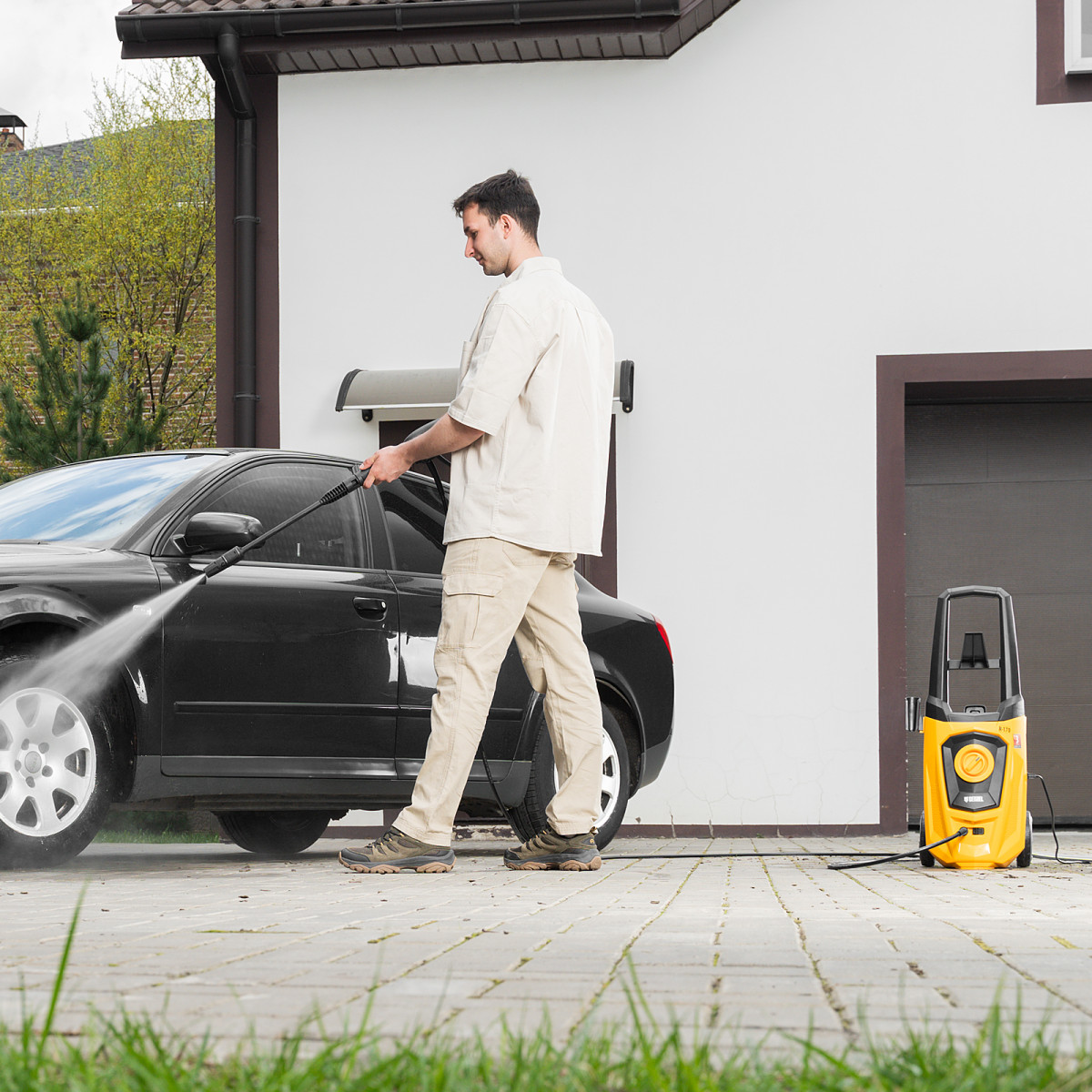 • Длина шланга и кабеля 5 м — не нужно часто перемещать машину, можно работать на удалении от розетки.