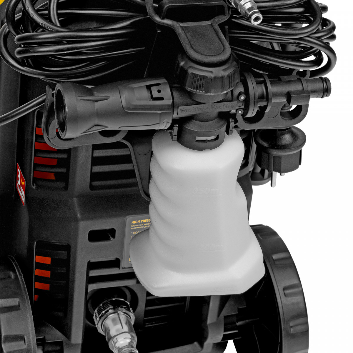 - Эффективное очищение — для получения качественного результата можно использовать моющее средство (пеногенератор входит в комплект поставки).