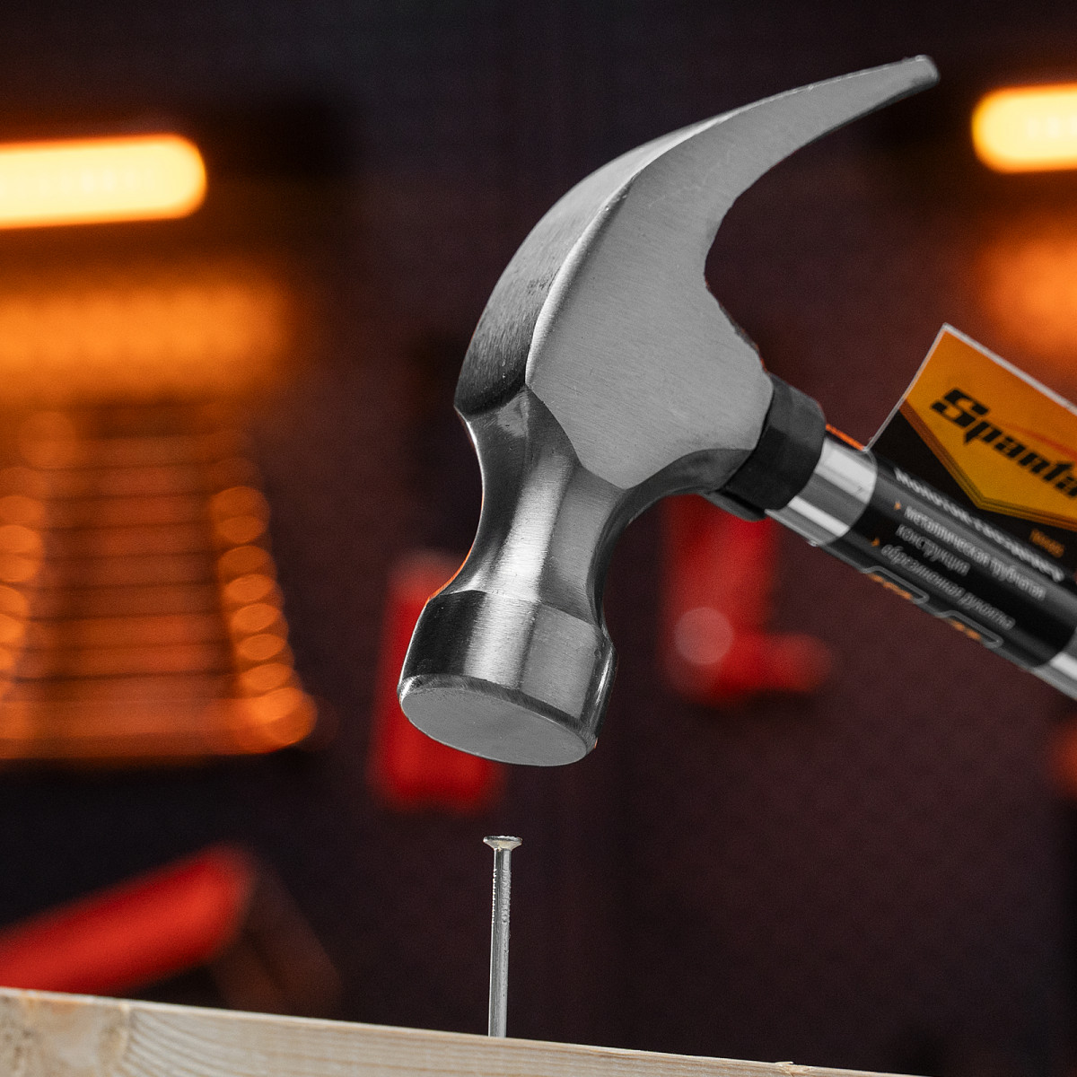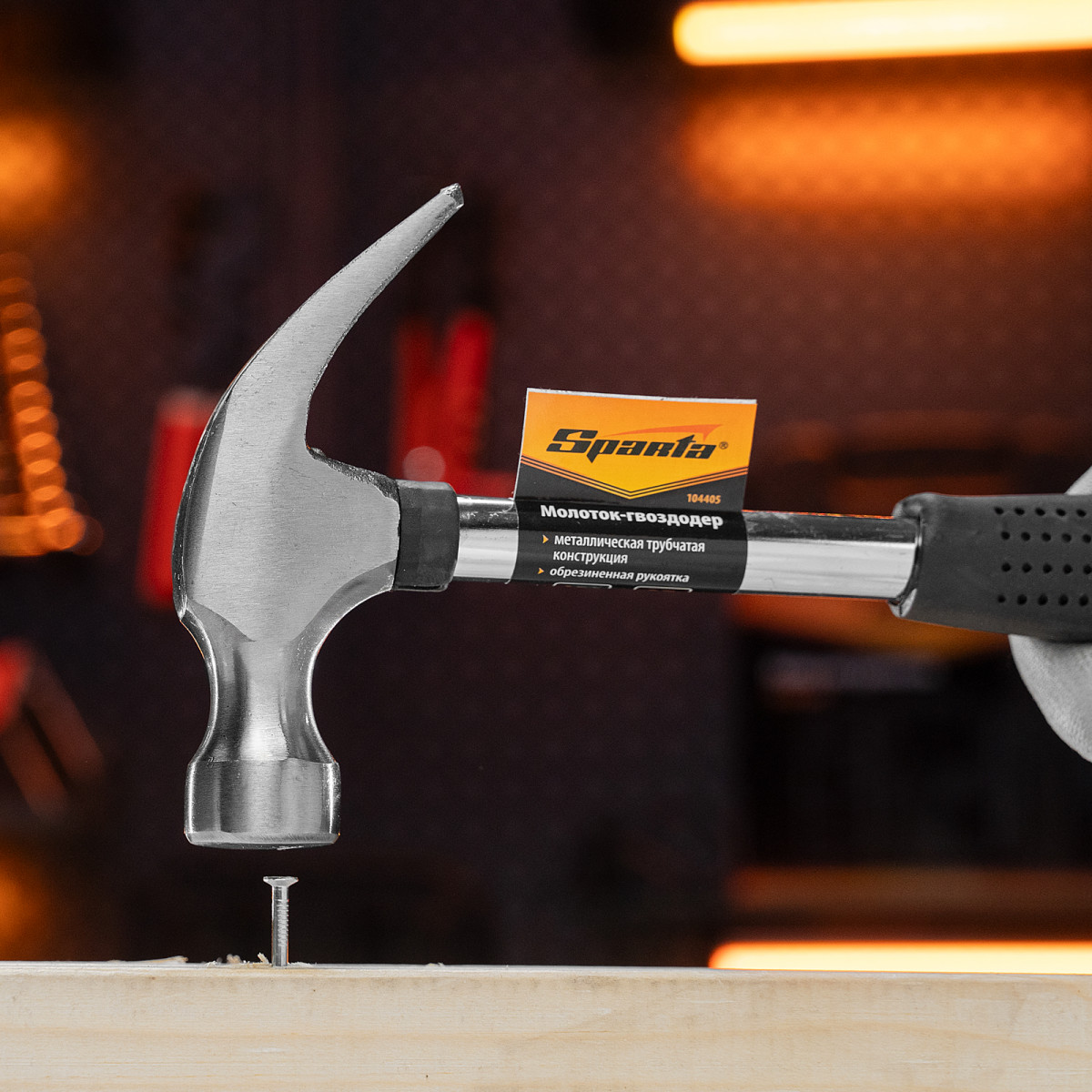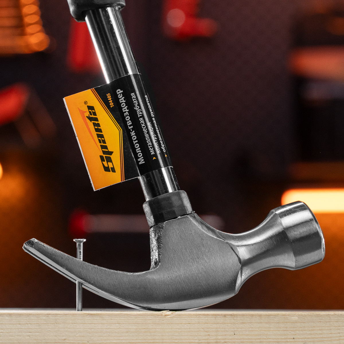 Молоток-гвоздодер, 450 г, боек 27 мм, металлическая трубчатая обрезиненная рукоятка Sparta