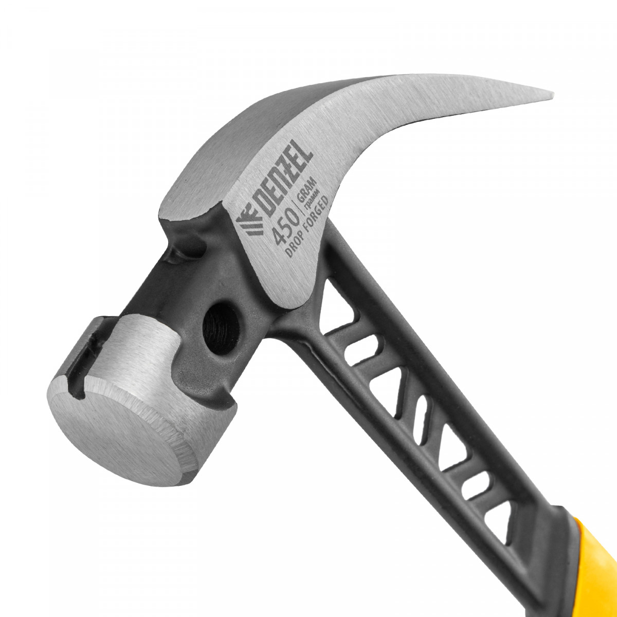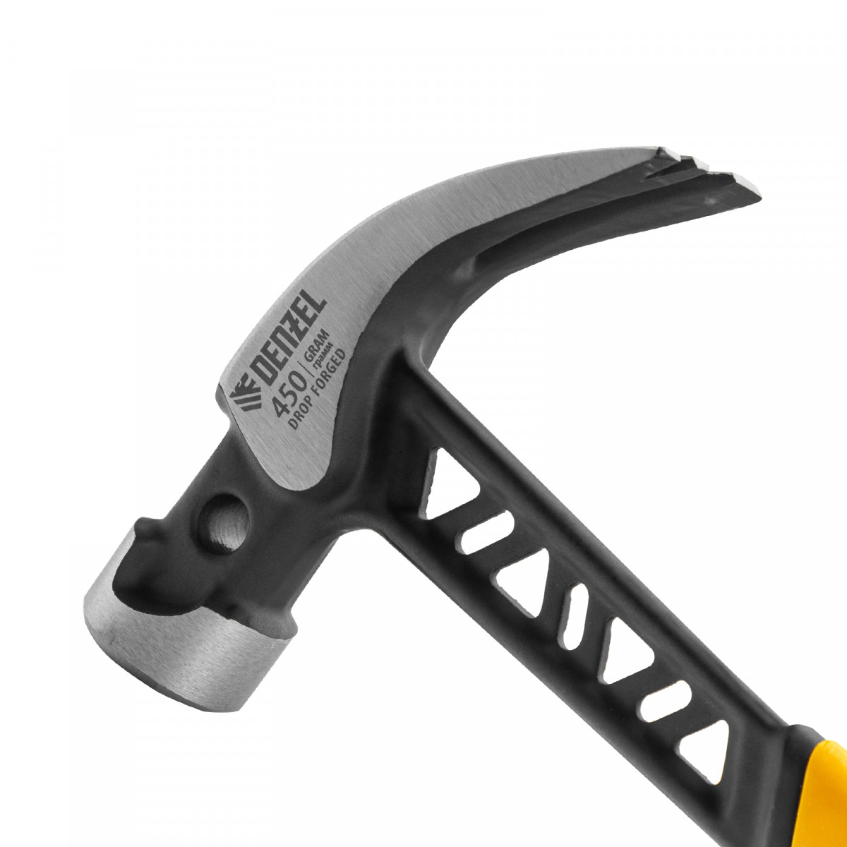 Молоток-гвоздодёр 450 г, цельнокованый,боек с магнитом, двухкомп. обрезин. рук-ка Denzel