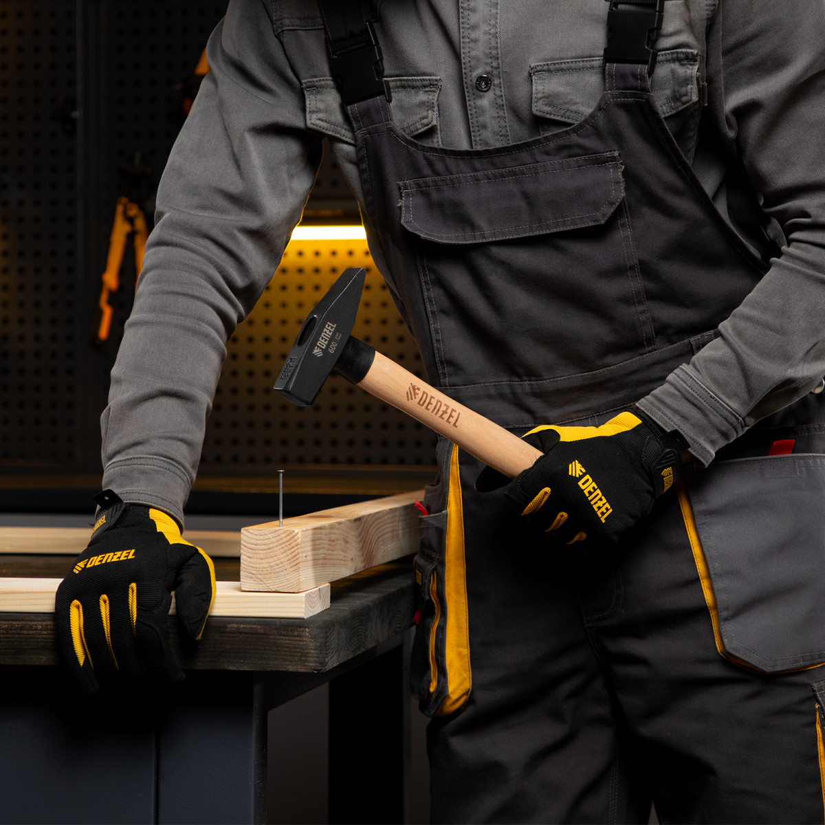 Слесарный молоток Denzel 10431 с квадратным кованым бойком весом 600 г предназначен для забивания гвоздей и другого крепежа и для работы с металлическими заготовками. Инструмент применяется во время слесарных или столярных работ в быту, также будет полезен профессионалам.