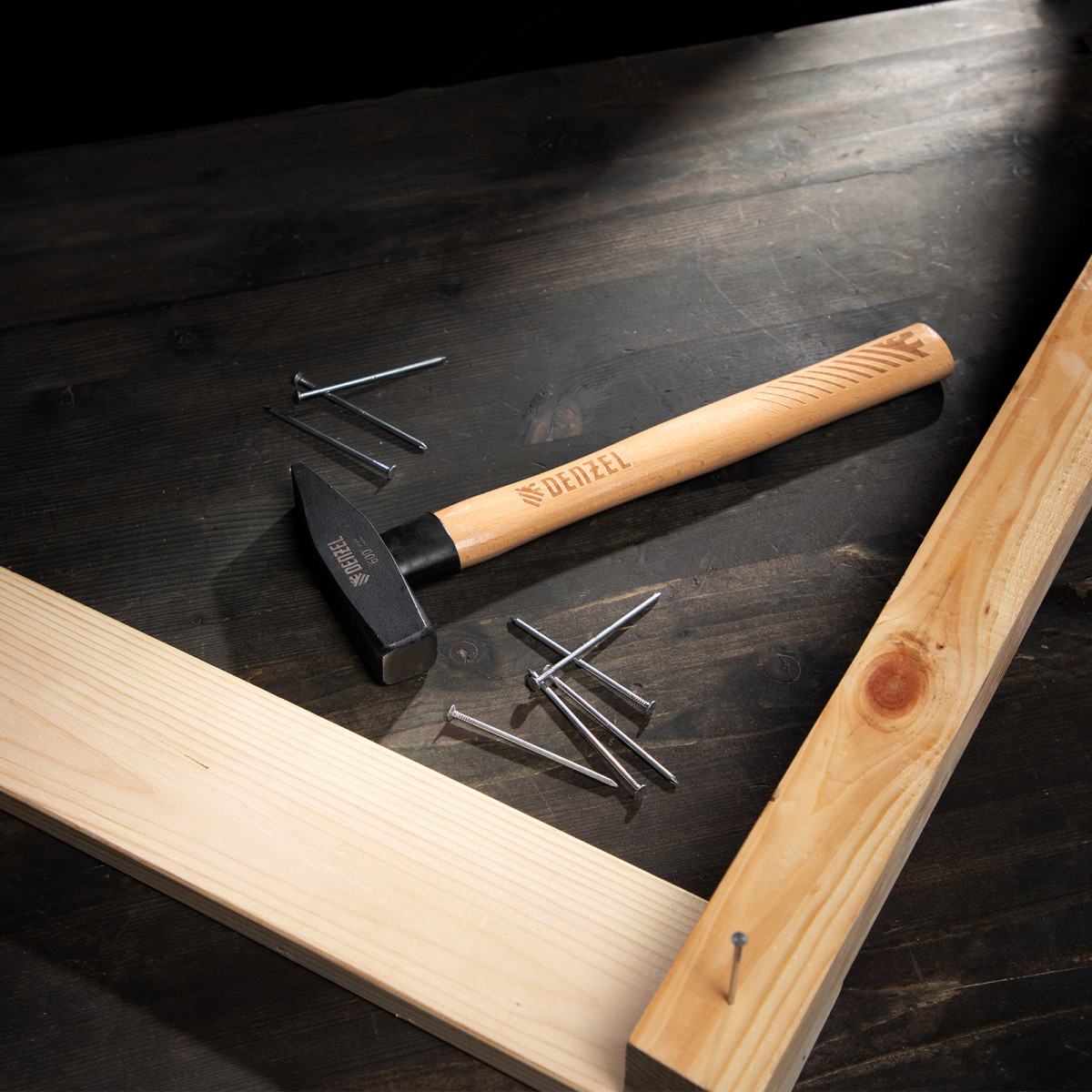 Молоток слесарный, 600 г, кованый квадратный боек, буковая рукоятка Denzel