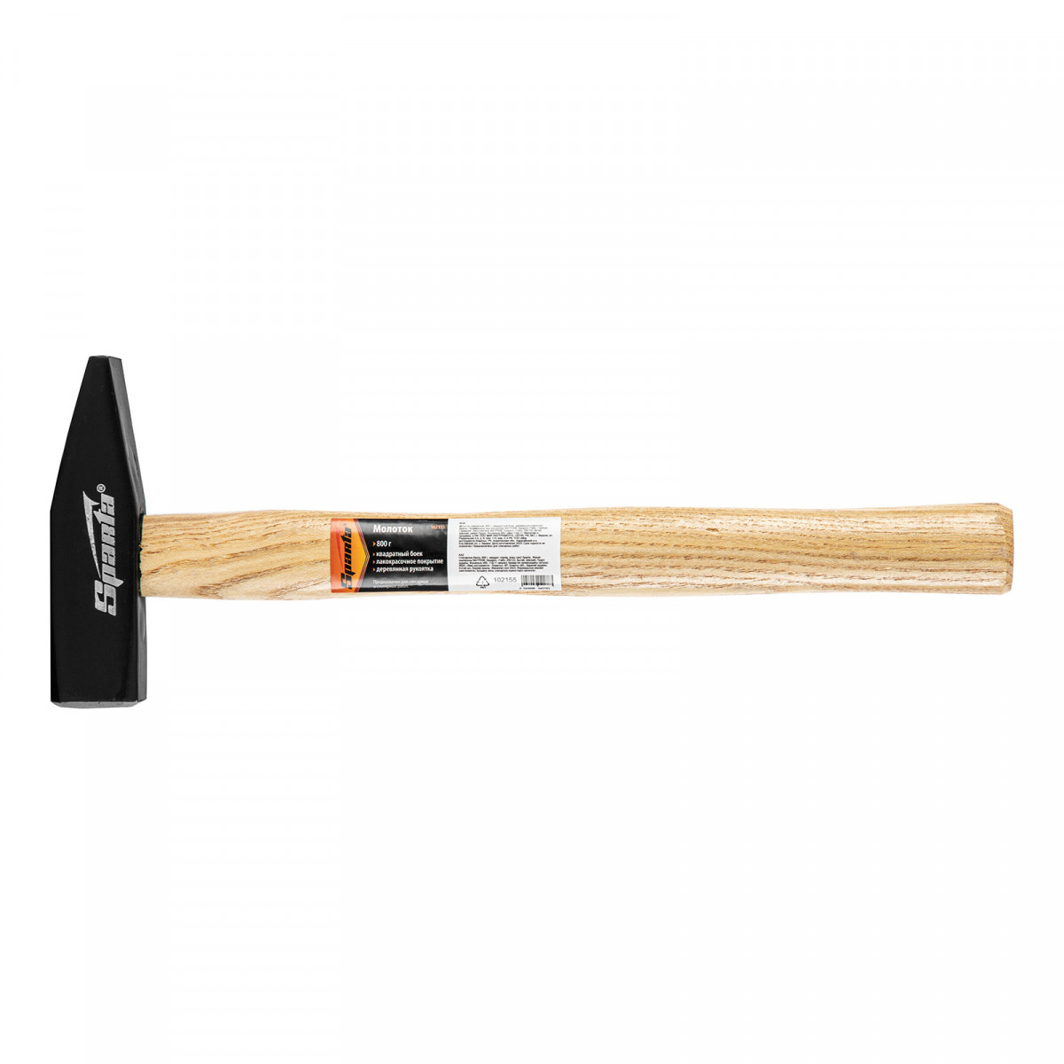 Молоток слесарный, 800 г, квадратный боек, деревянная рукоятка Sparta