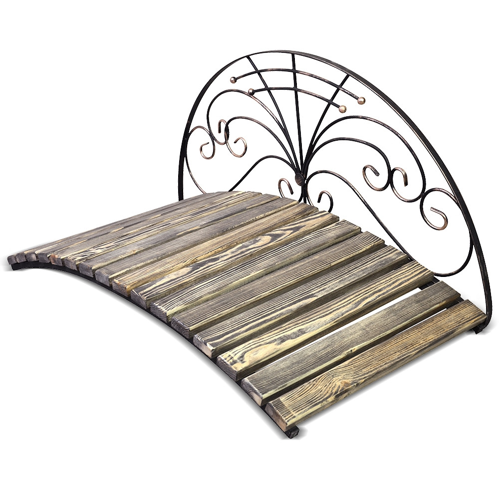 Декоративный кованый мостик 862-03R может служить переправой, через небольшой ручеёк на учаске. Так же данная модель будет отично сочитаться с «сухим ручейком». Прочная и надёжная конструкция без турда выдержит вес нескольких взрослых людей. Все деревянные элементы обработанны специальными влагостойкими составами.