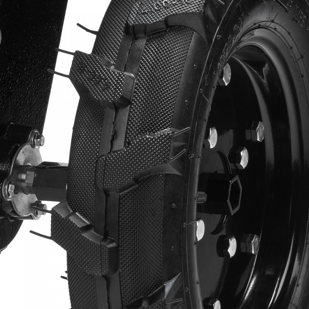 • Повышенная проходимость — пневматические колеса с агрессивным протектором облегчают работу с навесным оборудованием и транспортировку техники.
