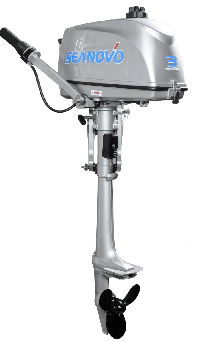 Экономичный расход топлива, лаконичный дизайн, ручка для транспортировки, возможность эксплуатации в соленой и пресной воде – все это главные достоинства двухтактного лодочного мотора Seanovo SN 3 FHS.