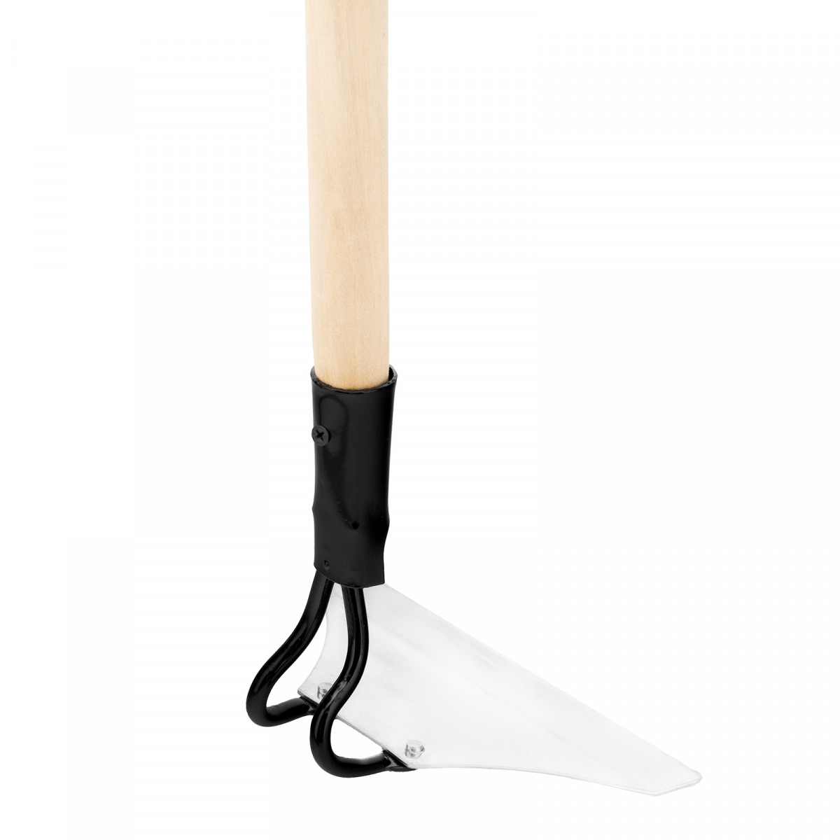 - Эффективная работа — режущая кромка остро заточена, поэтому мотыга легко срезает сорняки и рыхлит даже плотную почву.