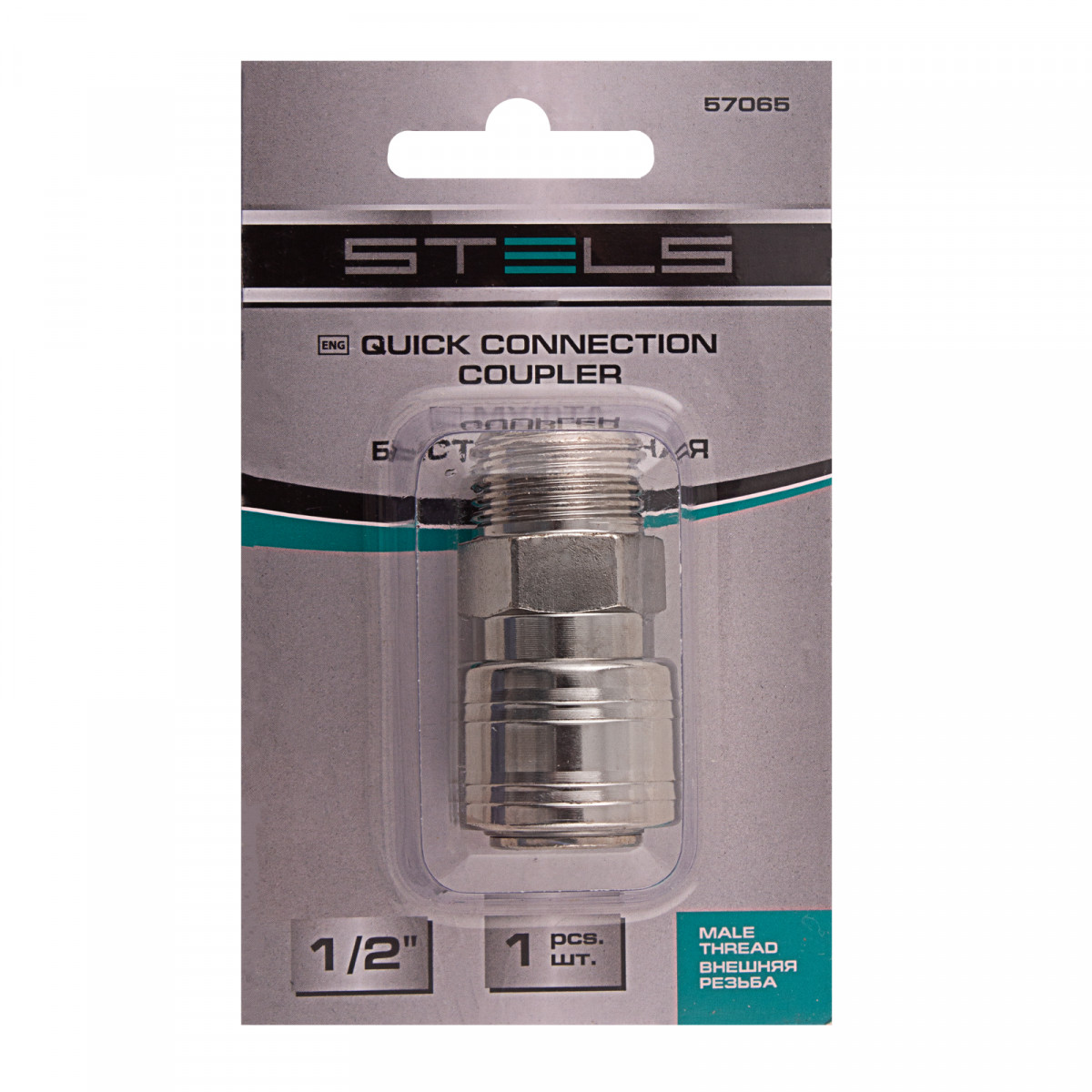 Универсальная быстросъемная муфта Stels 57065 с внешней резьбой 1/2 дюйма, 1 шт. в упаковке, позволяет герметично подключить пневматический шланг к компрессору со входом «мама». Используется для работы с пневмооборудованием, будет полезна во время ремонта, на строительной площадке и в гараже.