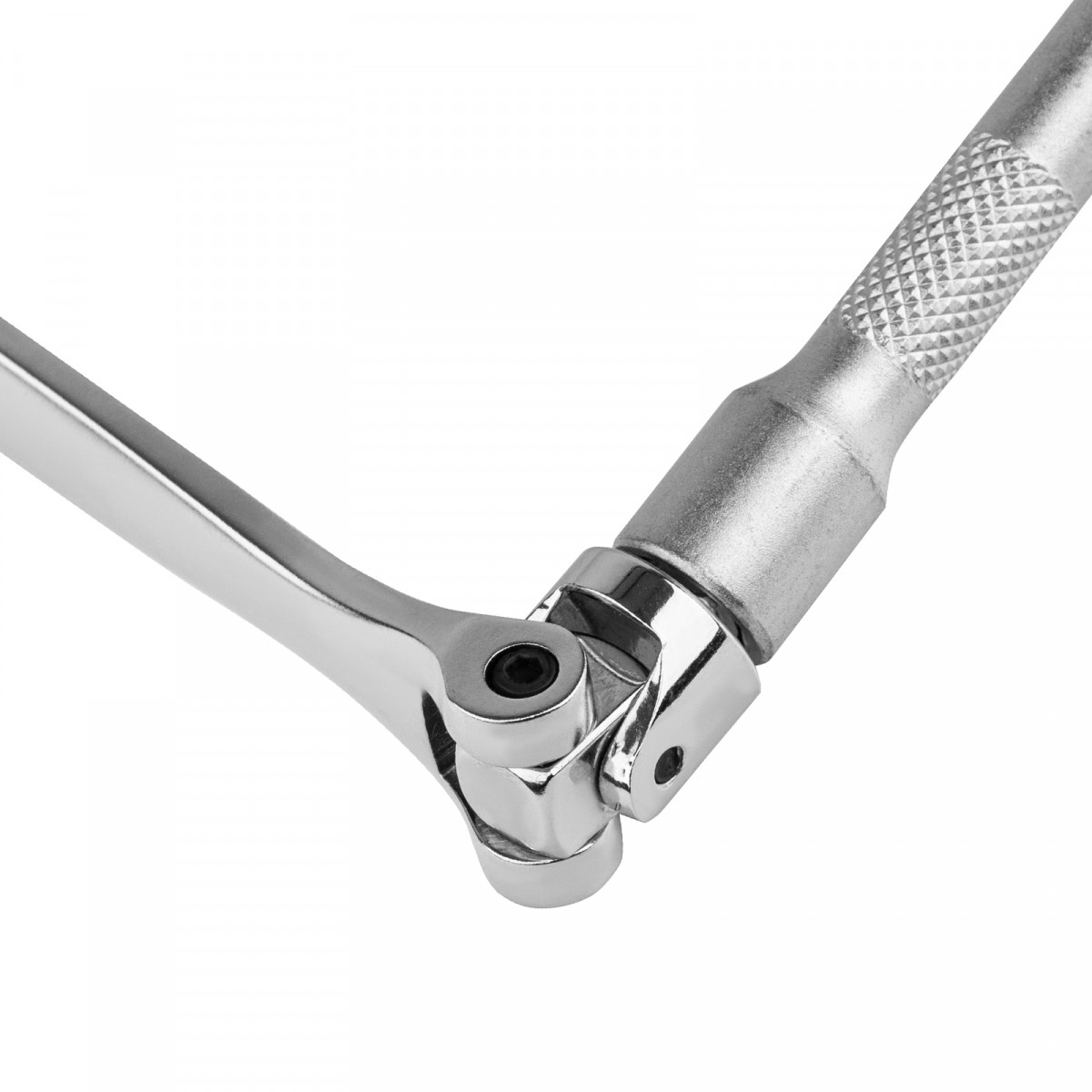 - Надежная фиксация — переходник под торцевые головки оснащен металлическим шариком, а карданный ключ — быстрозажимным механизмом, что позволяет крепко удерживать оснастку.
