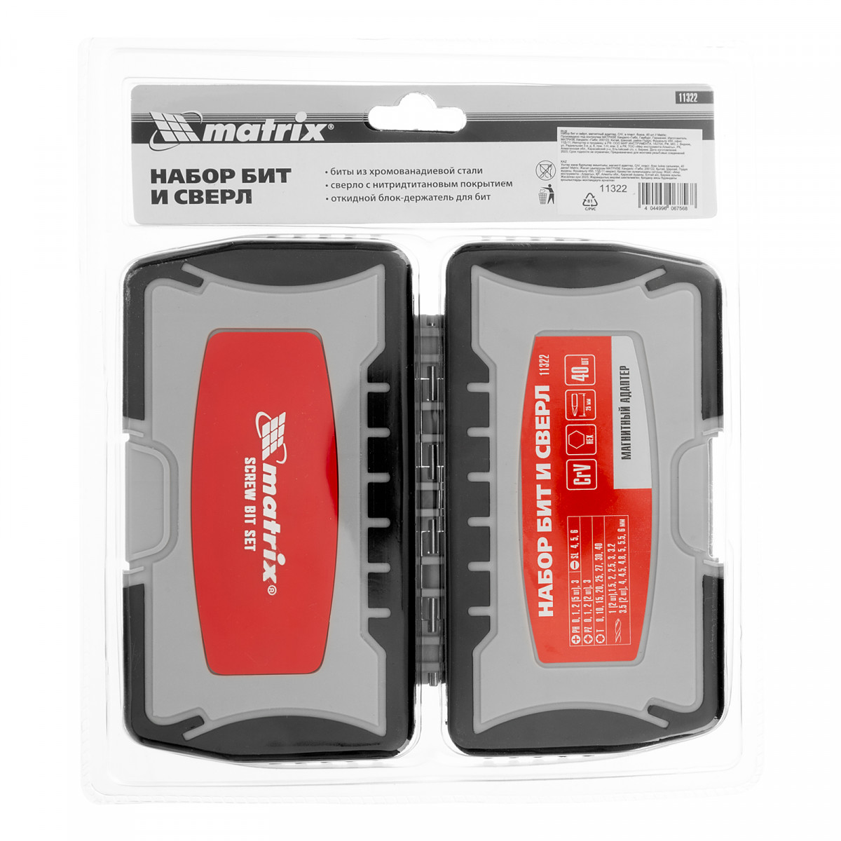 Набор бит и сверл, магнитный адаптер, CrV, пластиковый кейс, 40 шт. Matrix