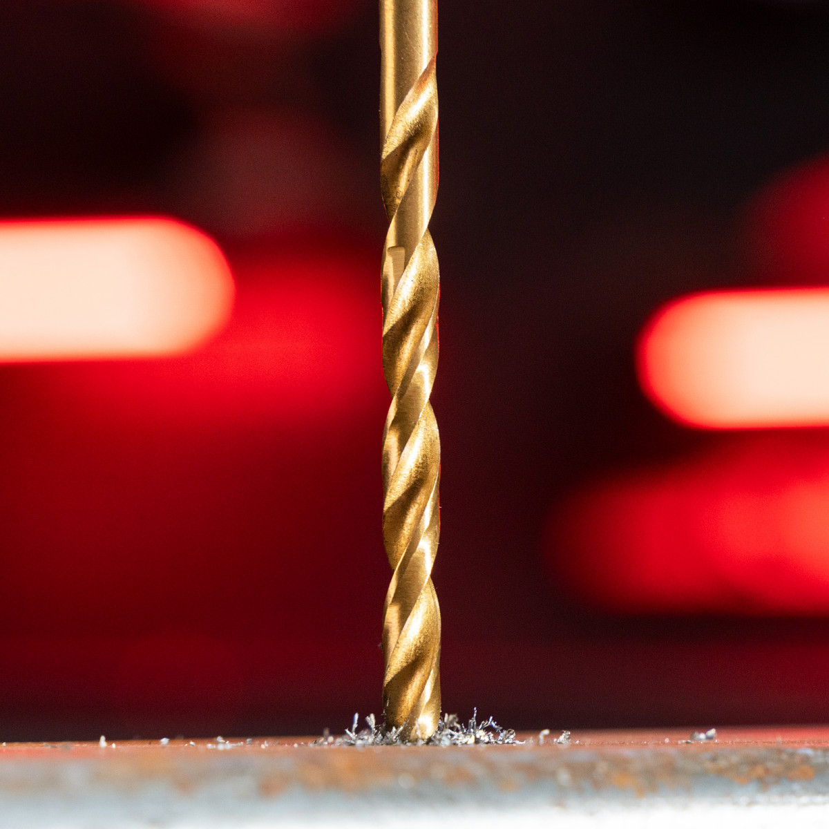 • Износостойкость и защита от коррозии — нитридтитановое покрытие сверл предотвращает появление ржавчины и повышает устойчивость к повреждениям.