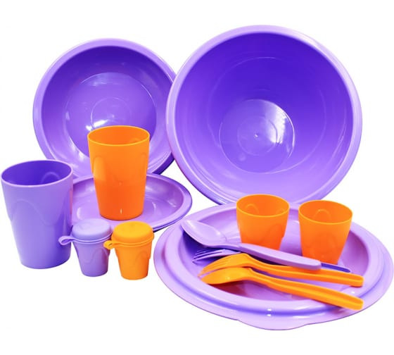 Вся посуда и приборы изготовлены из высококачественного пищевого пластика. Набор имеет легкий вес и поставляется в сумке, удобной для хранения и переноски.