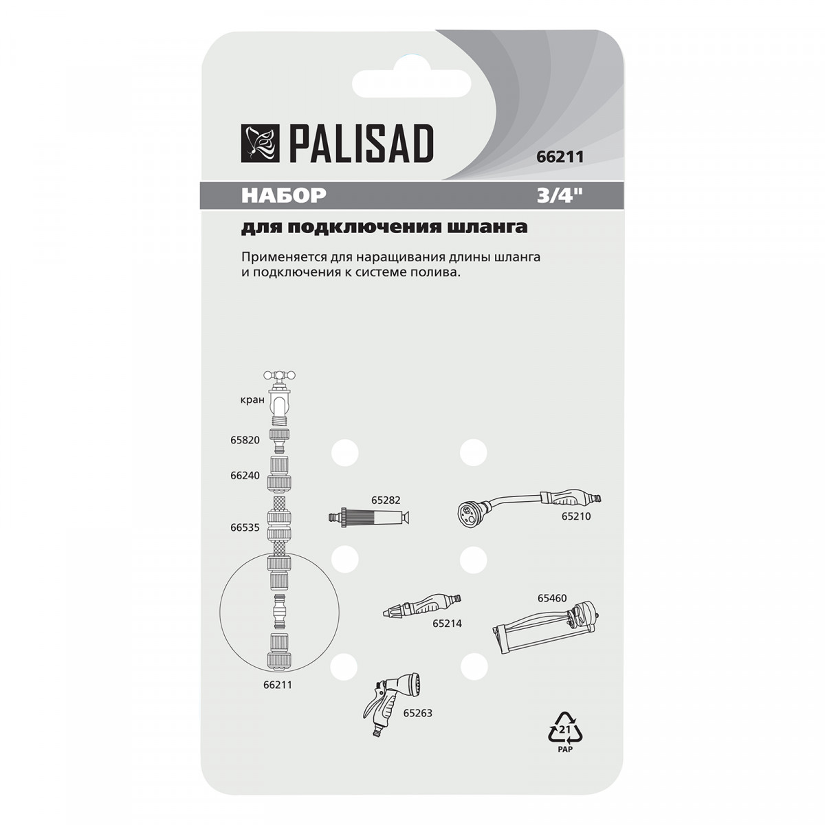 Набор для соединения шлангов 3/4, переходник, 2 соединителя, аквастоп, латунный Palisad