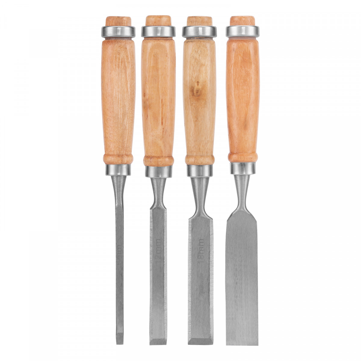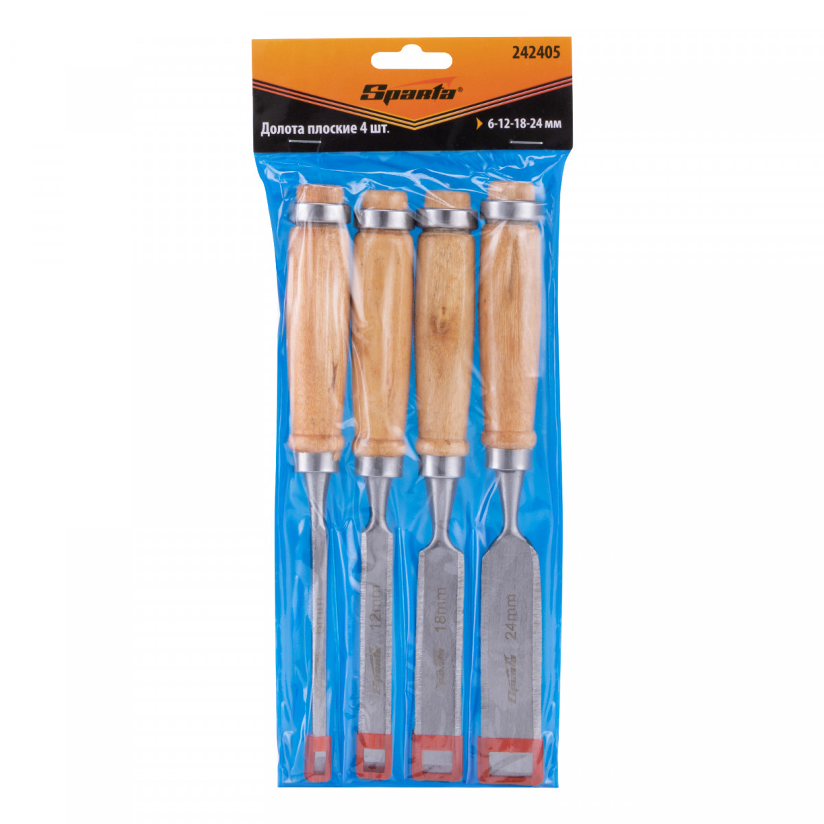 Набор долот-стамесок, 6-12-18-24 мм, плоских, деревянные рукоятки Sparta