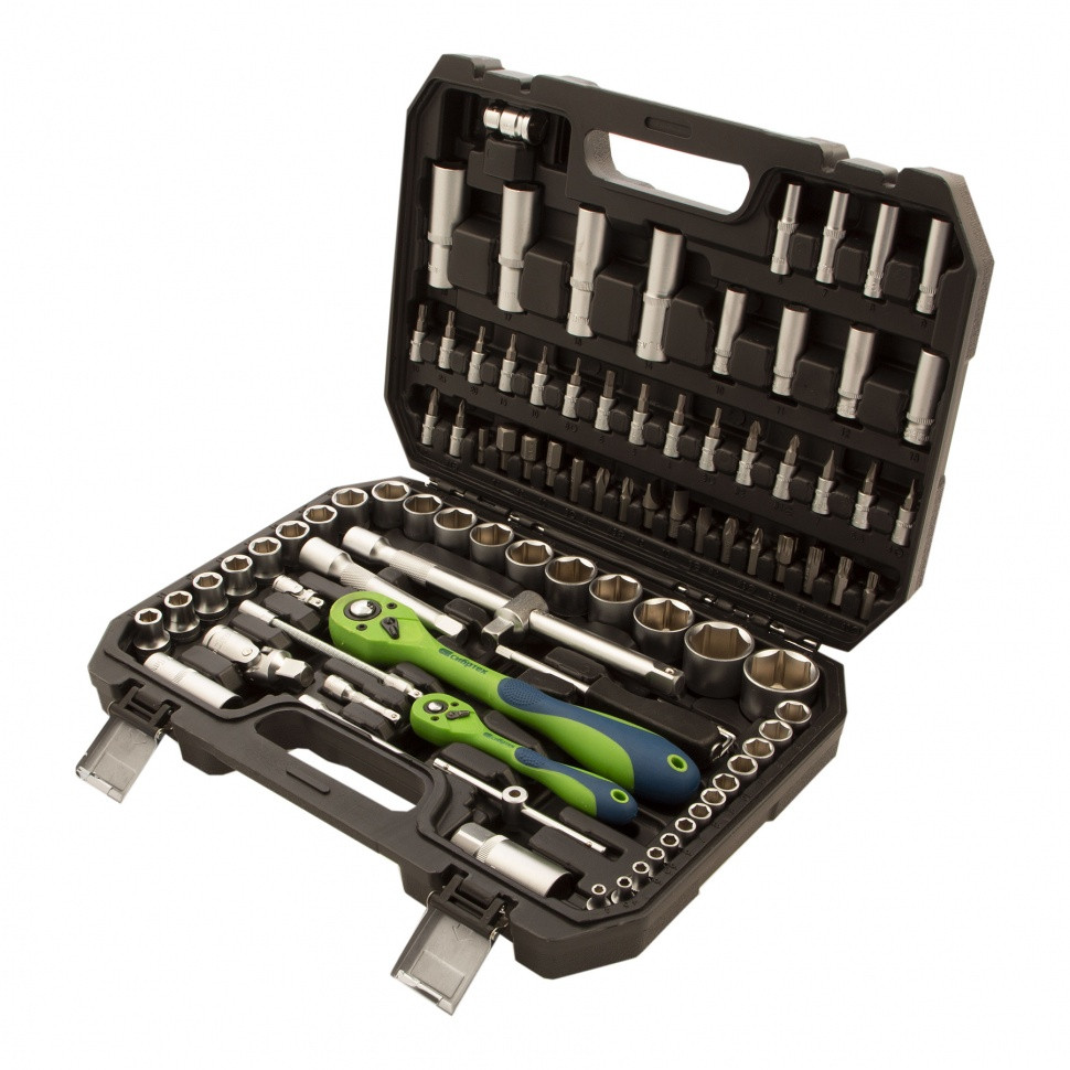 Разработан специально для автолюбителей, предназначен для ремонта машины в гараже. Может использоваться для выполнения несложных бытовых работ. Элементы набора изготовлены из CrV стали, обеспечивающей исключительную прочность, и имеют антикоррозийное матовое покрытие. Трещоточный ключ оснащен специальным переключателем с насечкой, что позволяет удобно работать одной рукой. Набор упакован в кейс, изготовленный из прочного противоударного пластика. Надежные металлические замки.