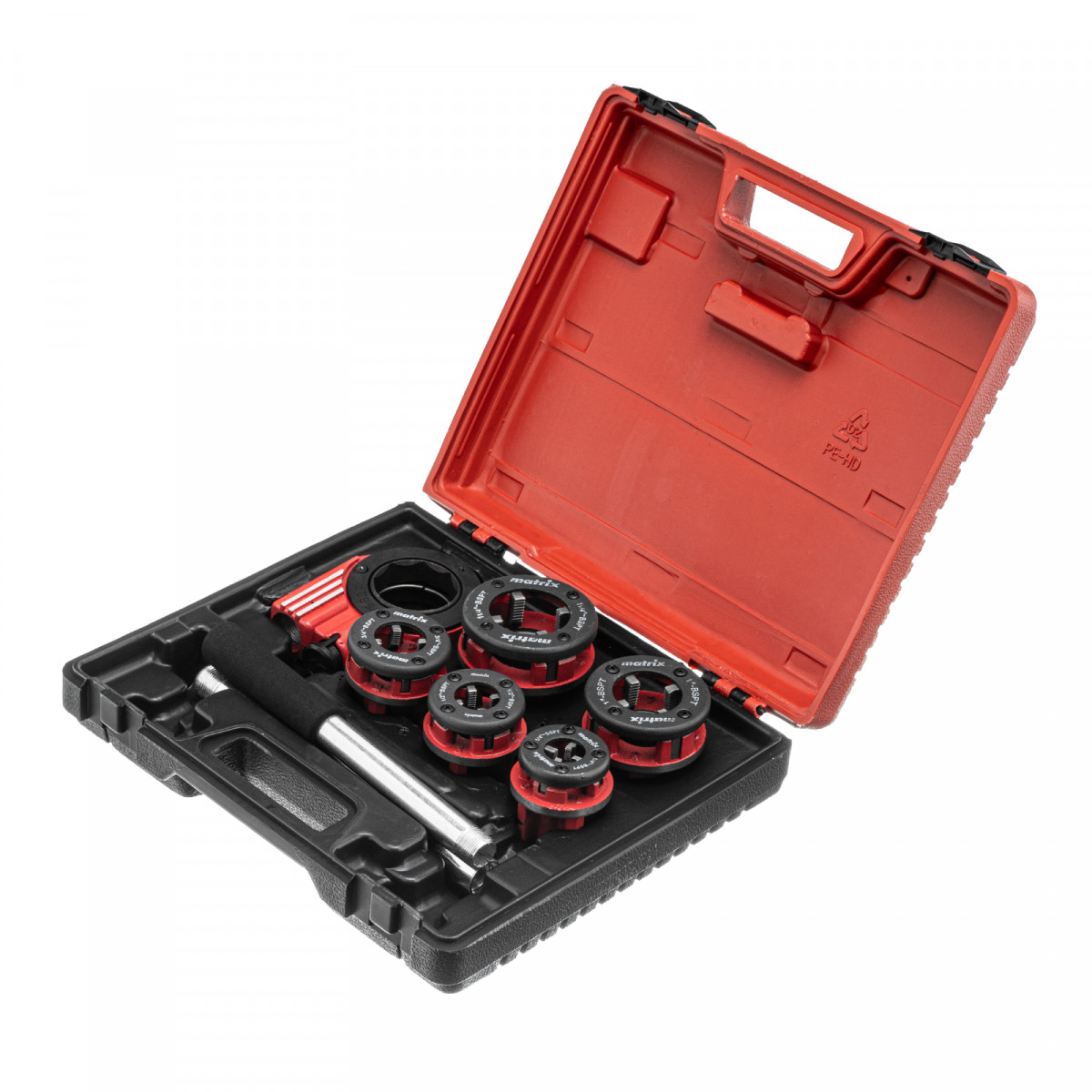 Набор клуппов 1/4-1/2-3/4-1-1.25"+ плашкодержатель с трещоткой, 8 предметов Matrix