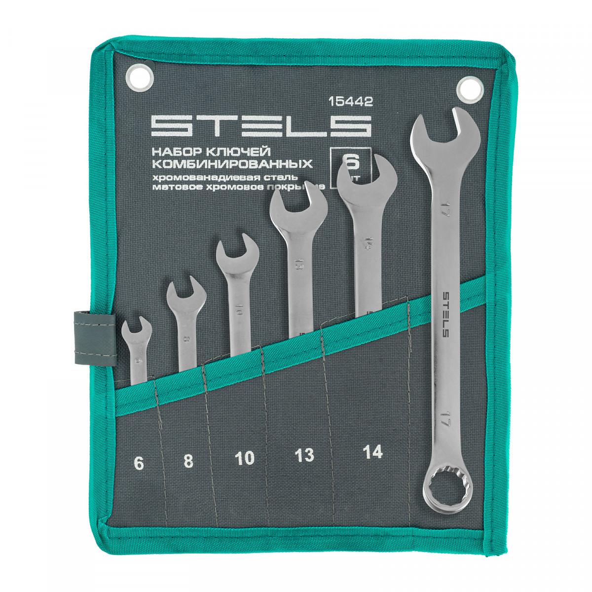 Набор ключей комбинированных 6-17 мм, 6 шт., CrV, матовый хром Stels