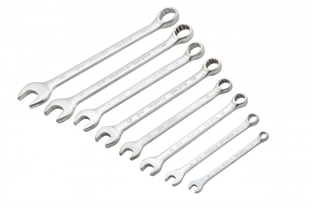 Набор ключей комбинированных, 6-19 мм, 8 шт, CrV, матовый хром Matrix