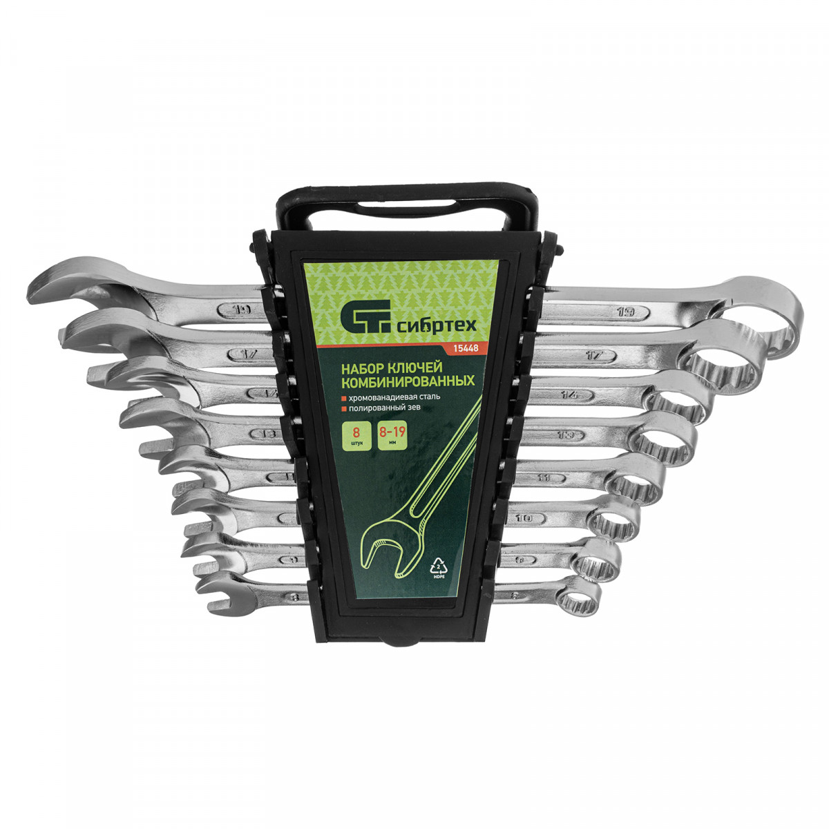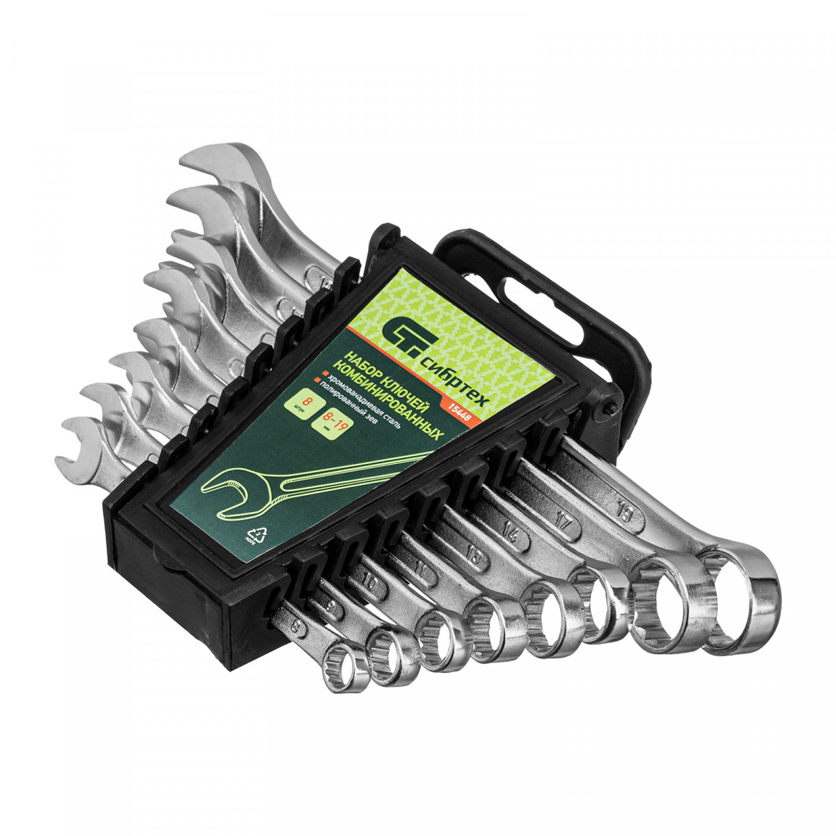 Набор ключей комбинированных, 8-19 мм, CrV, 8 шт Сибртех