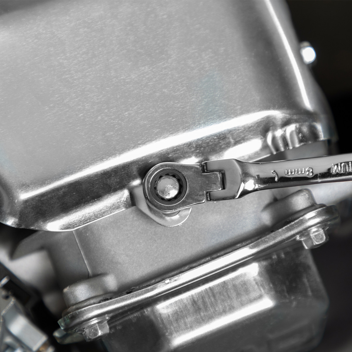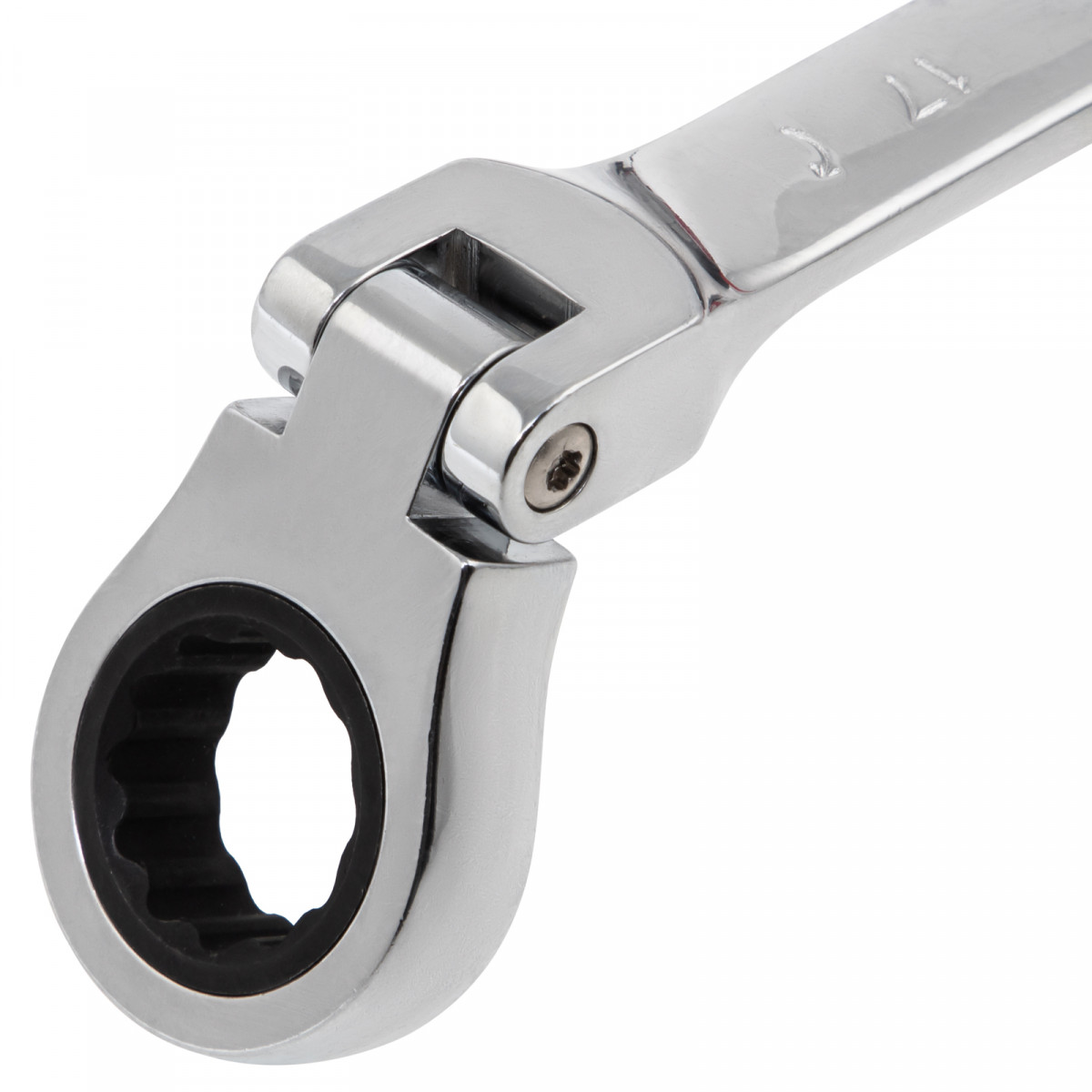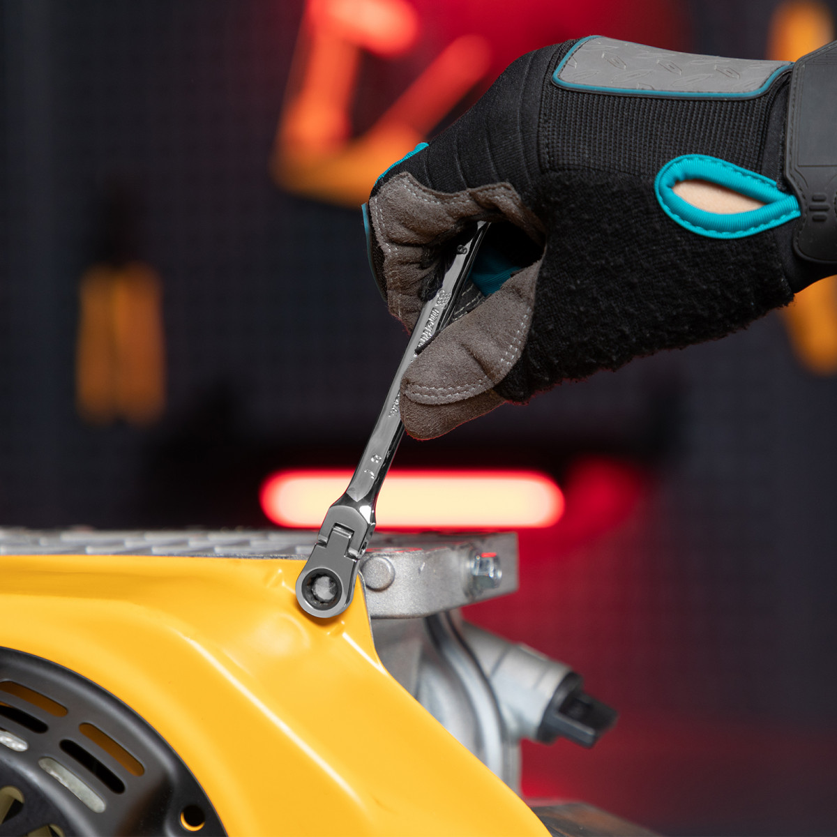 • Удобная работа в труднодоступных местах — храповой механизм на 72 зуба обеспечивает плавное вращение (шаг трещотки составляет 5°), а шарнир позволяет поворачивать рабочую часть под углом.