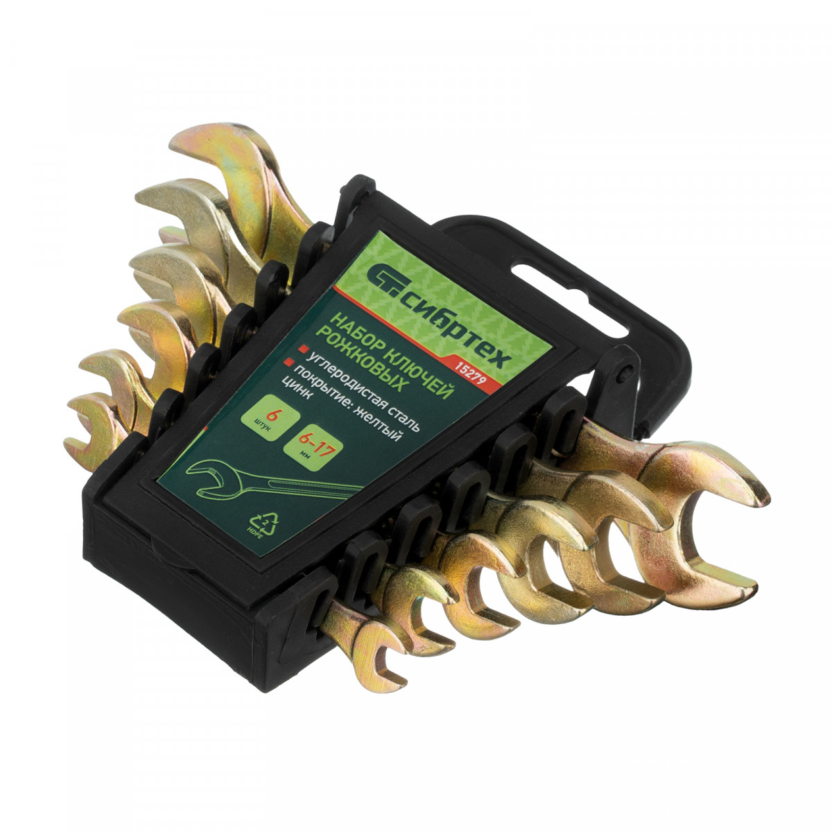 Набор ключей рожковых 6-17 мм, 6 шт, желтый цинк Сибртех